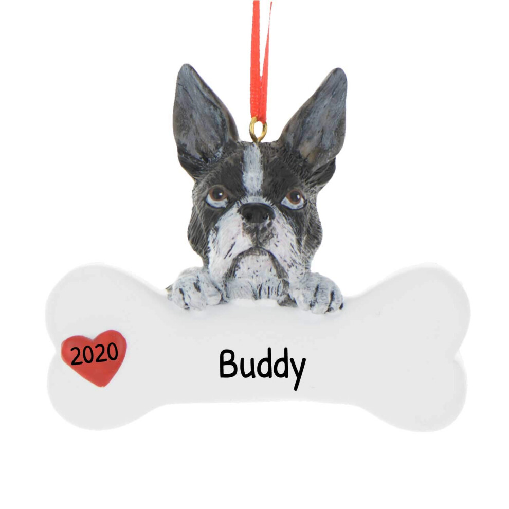 Personalized Dog Christmas Ornaments 2024 - Christmas Dog Bone Boston Terrier Gifts for Dog Lovers Dogs First Christmas Ornament 2024 Custom