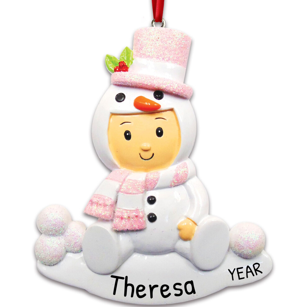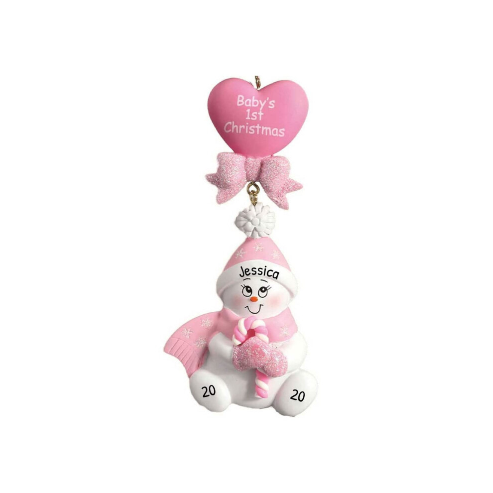 Personalized Babys First Christmas Ornaments 2024 - Custom Christmas Ornaments Snowman Baby Girl First Christmas Pink Ornaments Newborn Baby Girl Hang