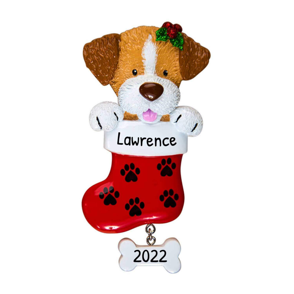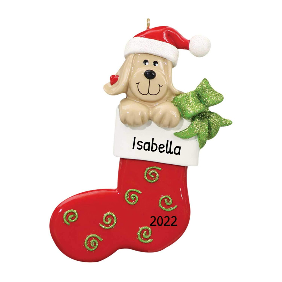 Personalized Dog Christmas Ornaments 2024 - Cream Yellow Puppy Stockings for Dog Lovers Dogs First Christmas Ornament 2024 Customized Dog Gifts Custom