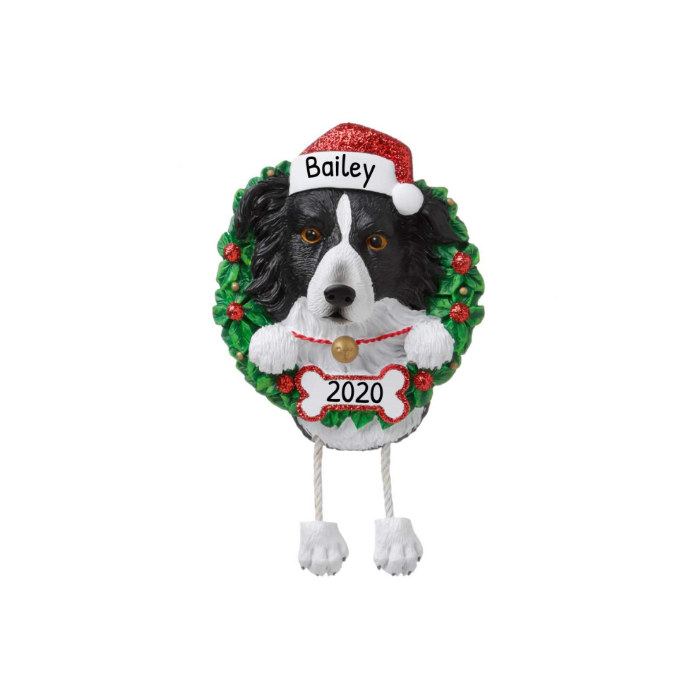 Personalized Dog Christmas Ornaments 2024 - Dog Wreath Border Collie for Dog Lovers Dogs First Christmas Ornament 2024 Customized Dog Gifts