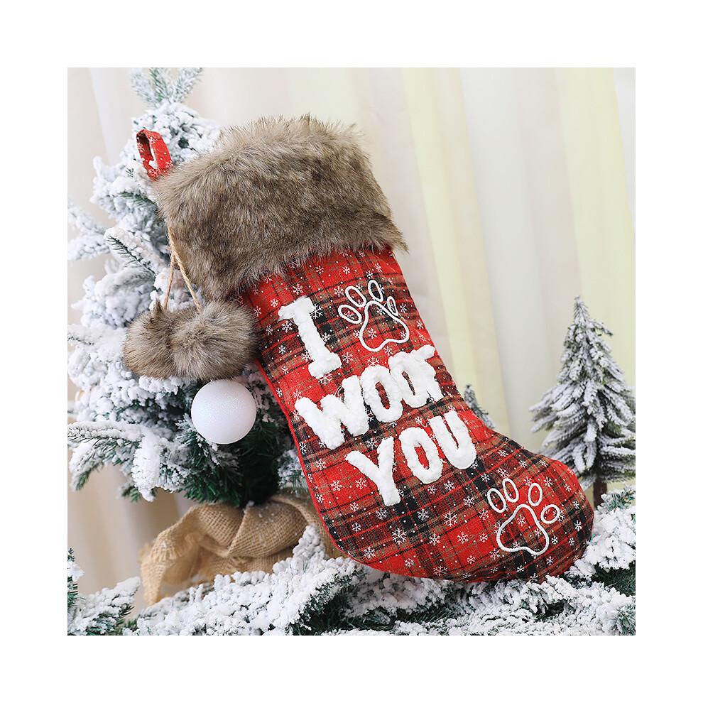 (1) 2024 Christmas Ornaments Socks Dog Cat Pendants XMAS Fur Collar Lattice Socks Christmas Tree Decorations Navidad Wholesale