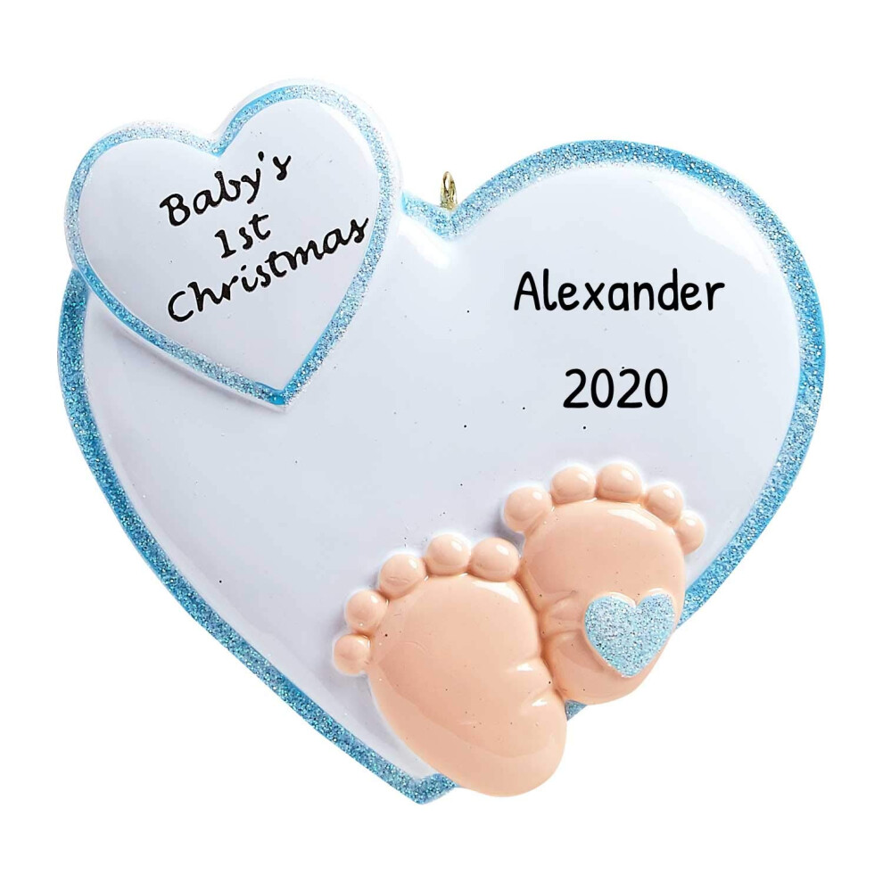 Personalized Baby's First Christmas Ornaments 2024 - Custom Christmas Ornament First Christmas Footprint Ornament Blue Heart Baby Print Ornament Keeps