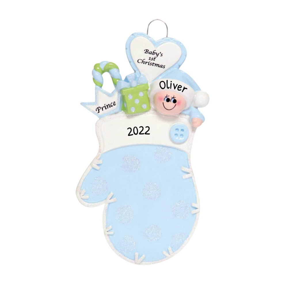 Personalized Babys First Christmas Ornaments 2024 - Custom Baby Boy First Christmas Ornament with Name Newborn Blue Mittens Ornament Gift Ideas for Ba