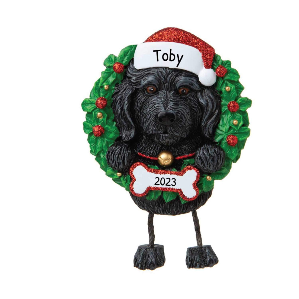 Ornaments by Elves Personalized Dog Christmas Ornaments 2024 - Dog Wreath Black Labradoodle Ornament for Dog Lovers Dogs First Christmas Ornament 2024