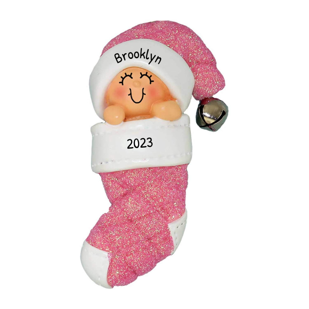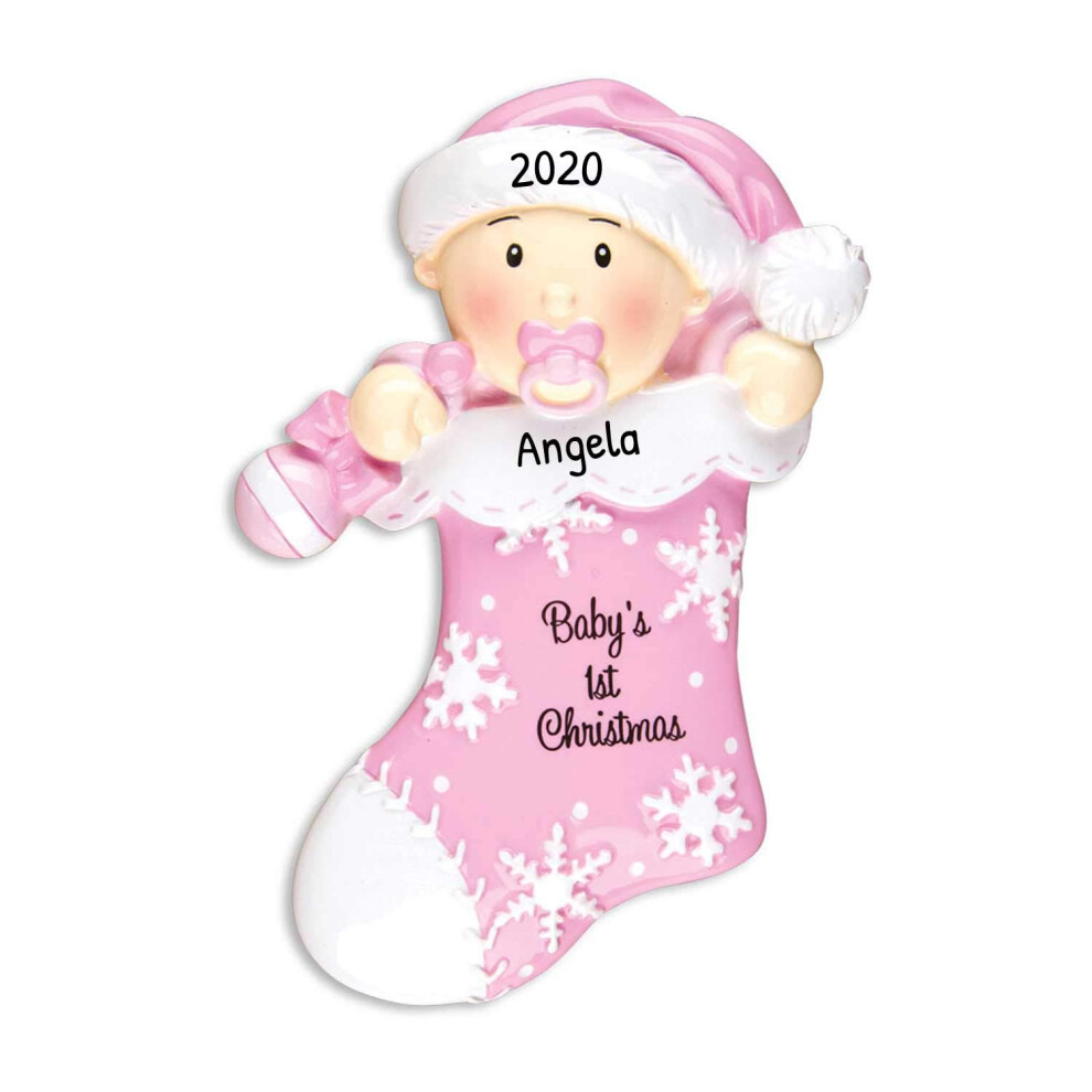 Personalized Babys First Christmas Ornaments 2024 Custom Christmas Ornaments Baby Girl First Christmas Pink Stocking Ornament