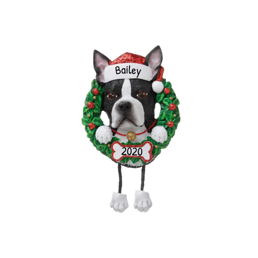 Personalized Dog Christmas Ornaments 2024 - Dog Wreath Boston Terrier for Dog Lovers Dogs First Christmas Ornament 2024 Customized Dog Gifts