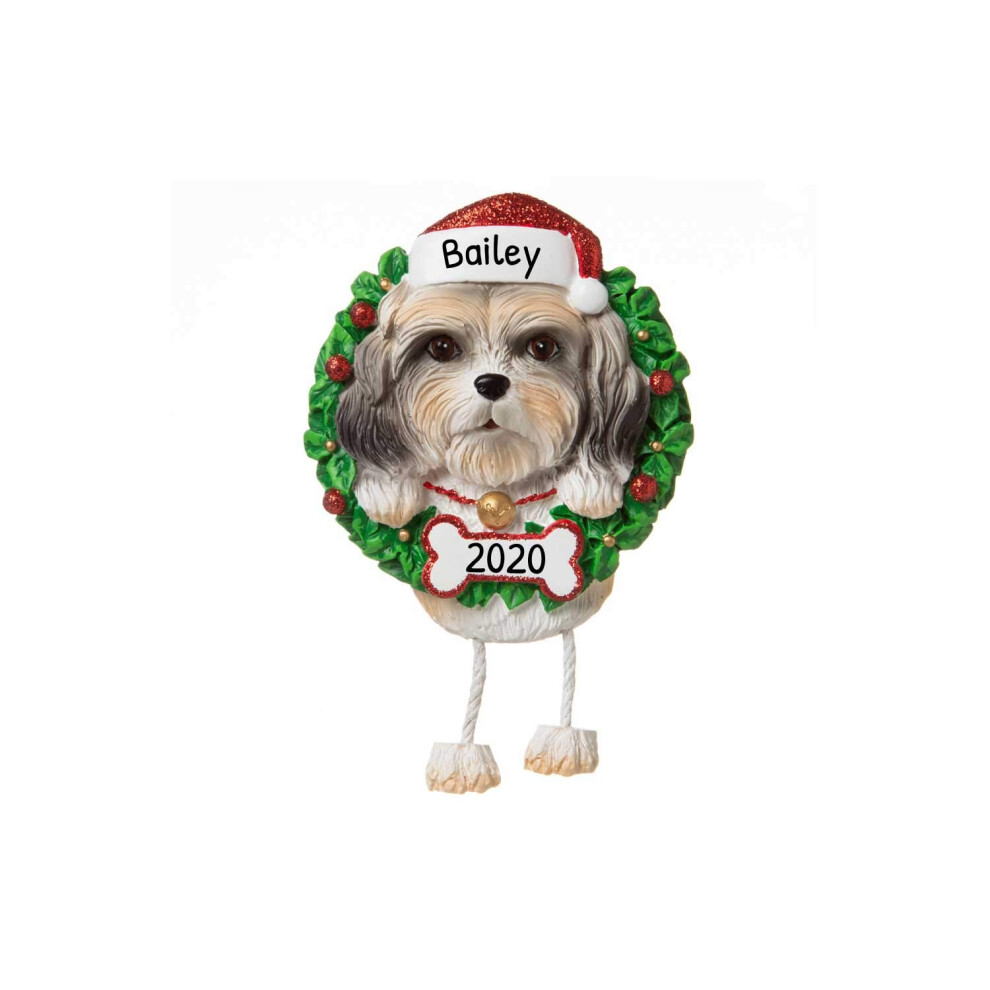 Personalized Dog Christmas Ornaments 2024 - Dog Wreath Shih Tzu Christmas Ornament for Dog Lovers Dogs First Christmas Ornament 2024 Customized Dog Gi
