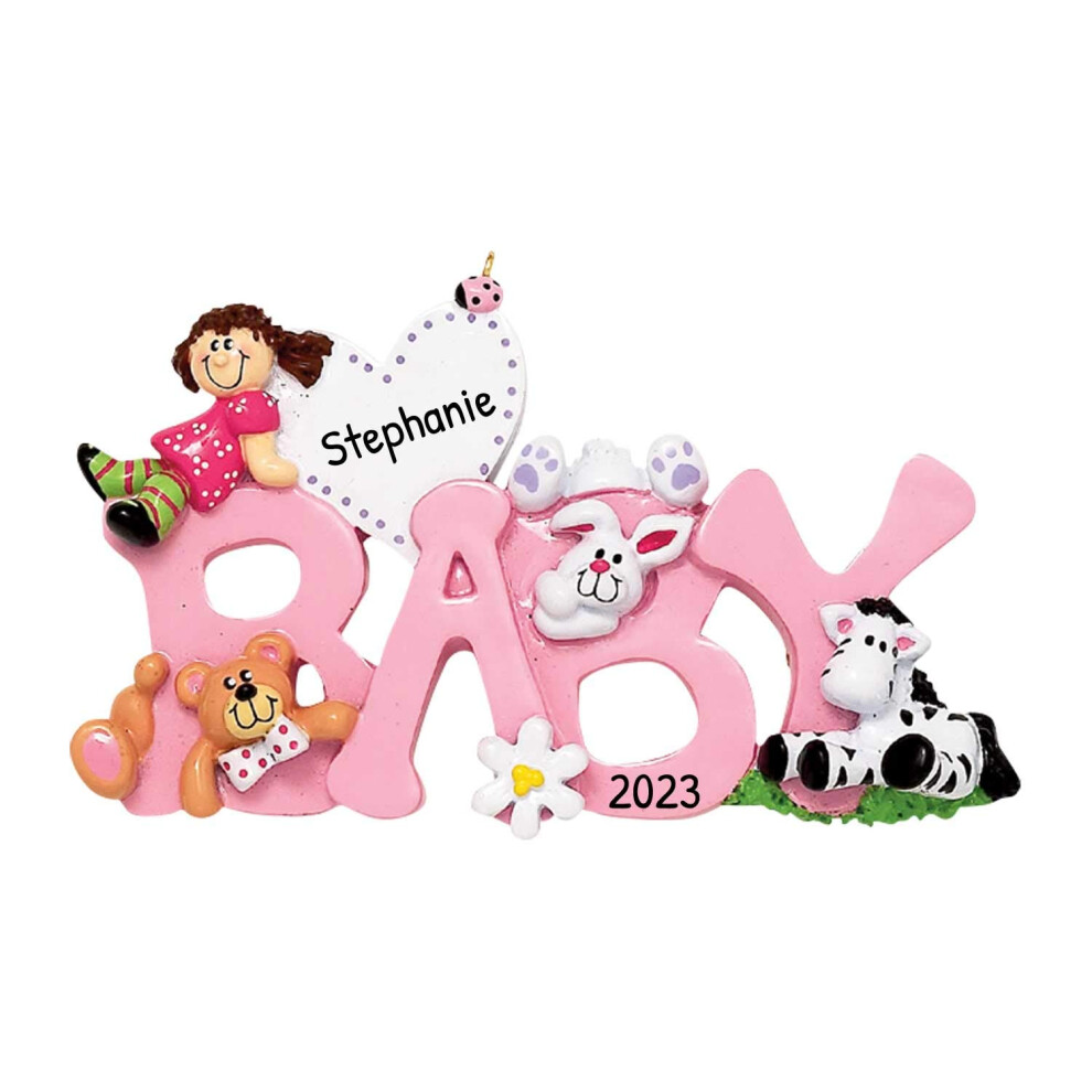 Personalized Babys First Christmas Ornaments 2024 Custom Christmas Ornaments Baby Girl First Christmas Ornament Baby Pink Name