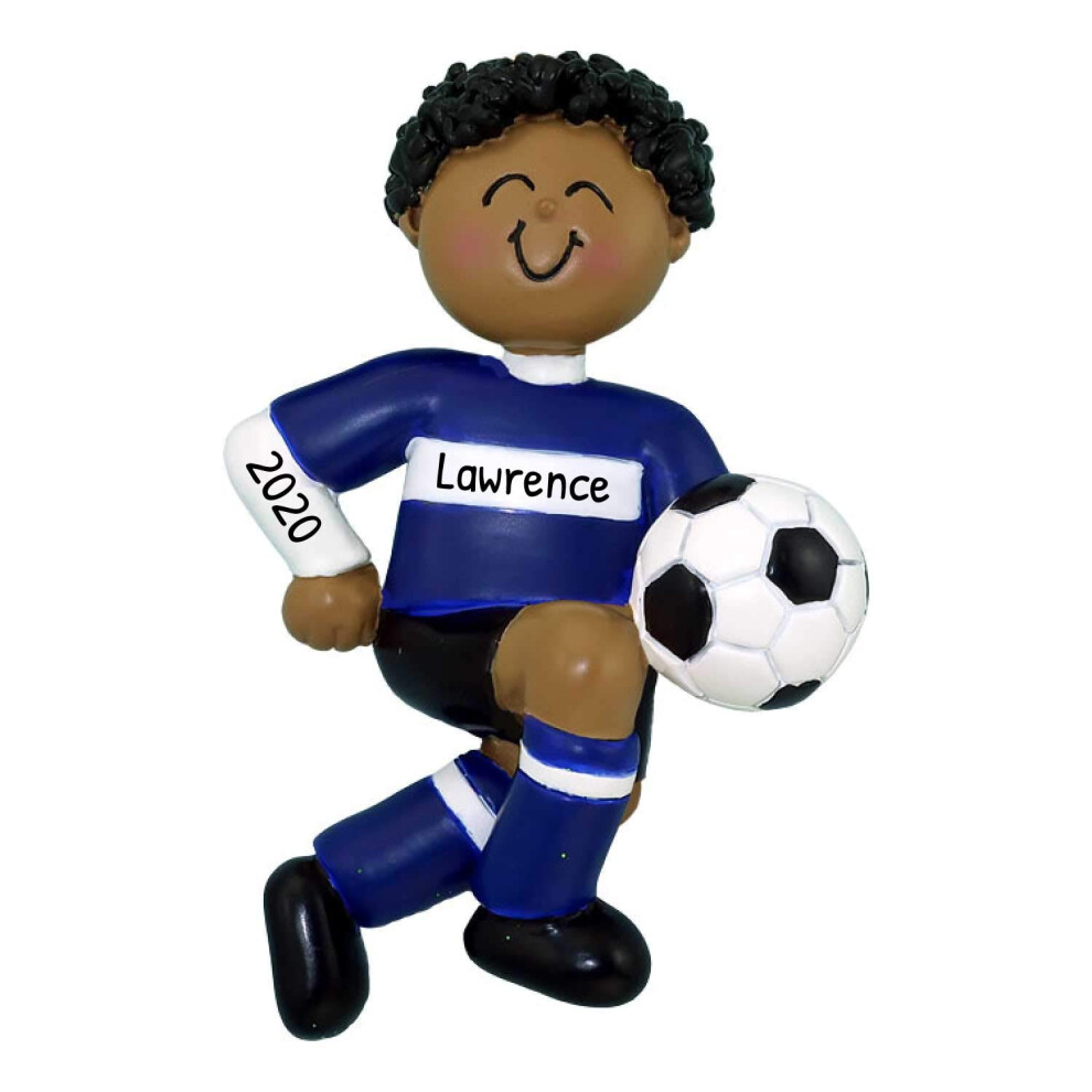 Personalized Blue Uniform African-american Boy Christmas Ornaments 2024 - Unique Customized Soccer Sports Theme Decoration The Ideal Gift fo