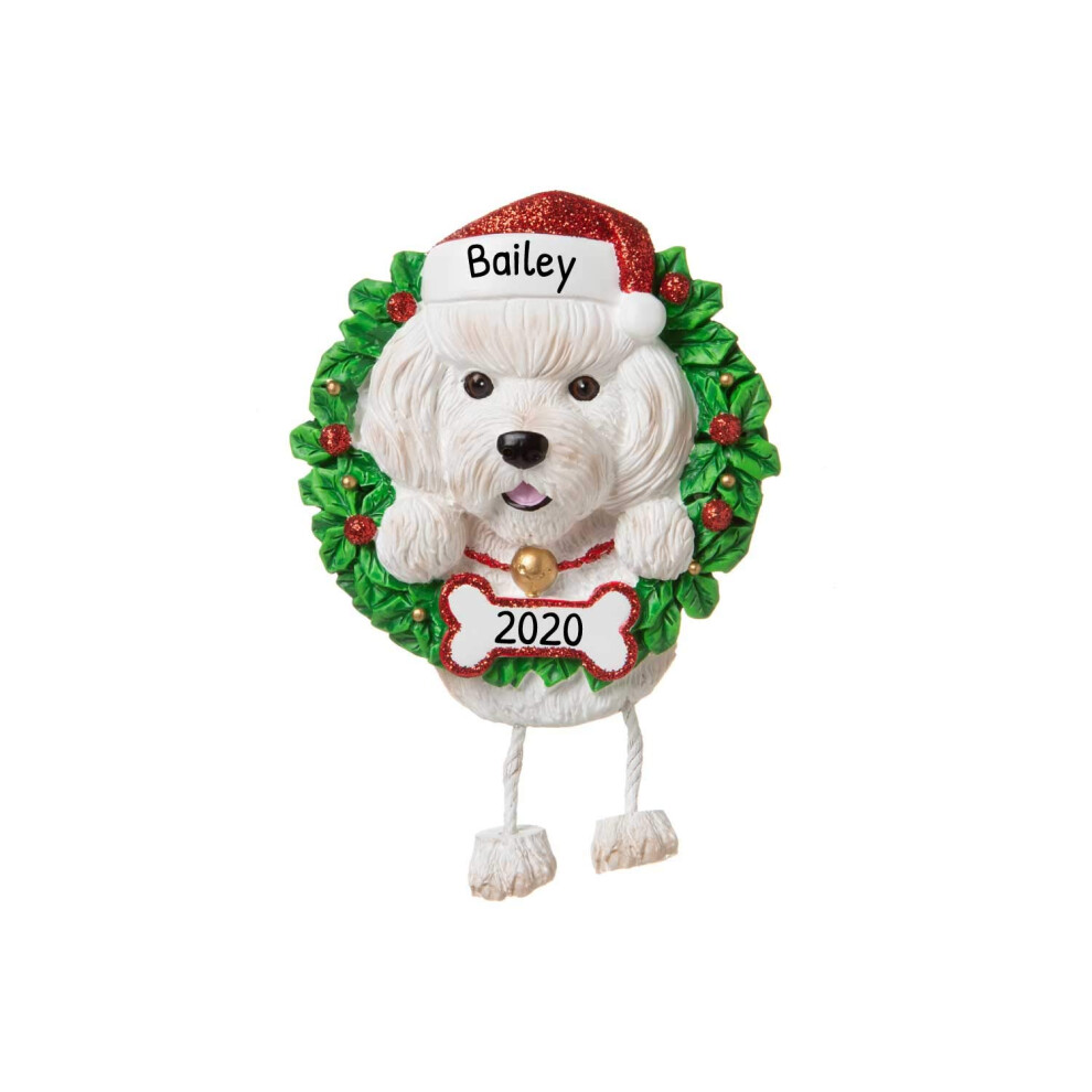Personalized Dog Christmas Ornaments 2024 - Dog Wreath Bichon Frise Ornament for Dog Lovers Dogs First Christmas Ornament 2024 Customized Dog Gifts Cu