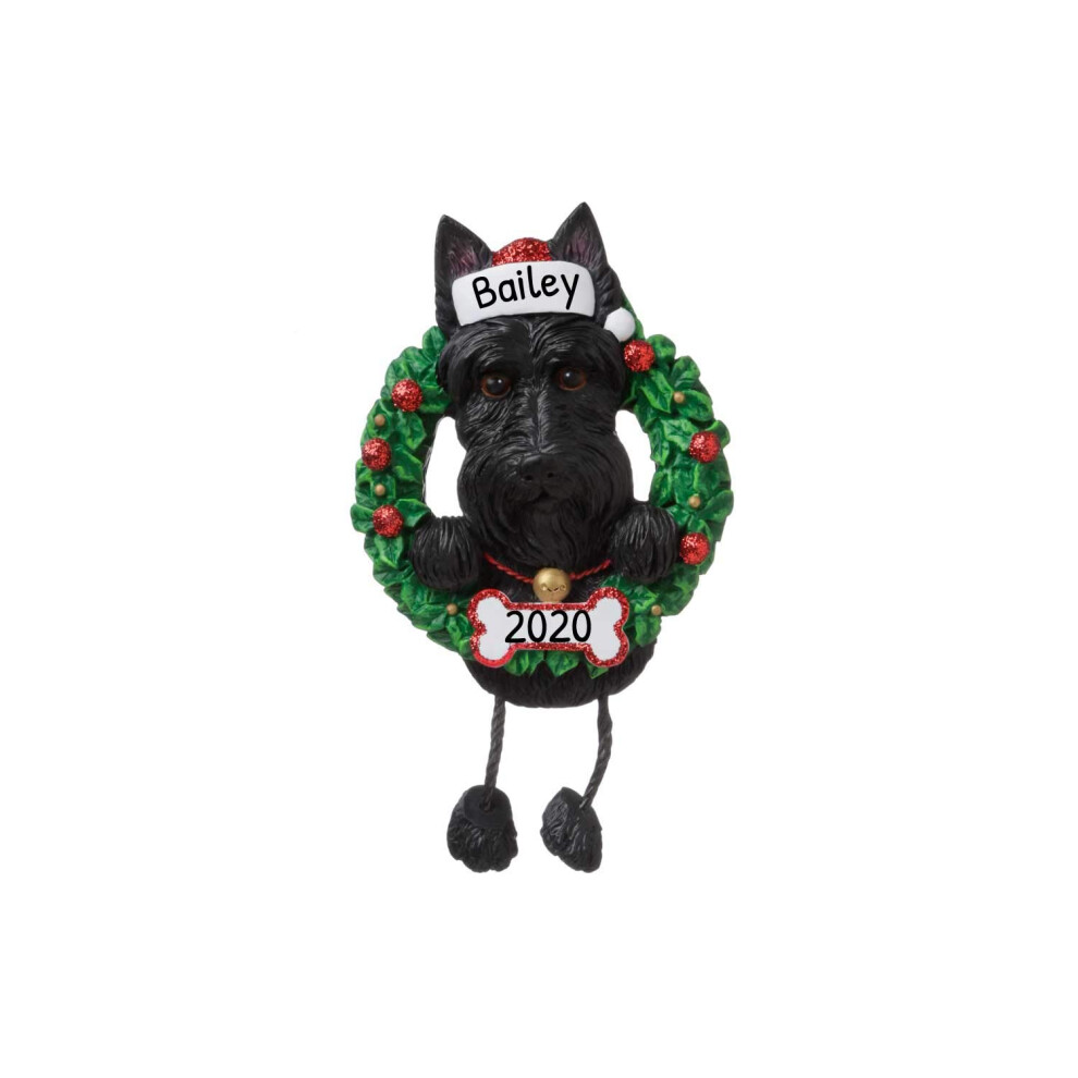 Personalized Dog Christmas Ornaments 2024 - Dog Wreath Black Scottie Dog Ornament for Dog Lovers Dogs First Christmas Ornament 2024 Customized Dog Gif