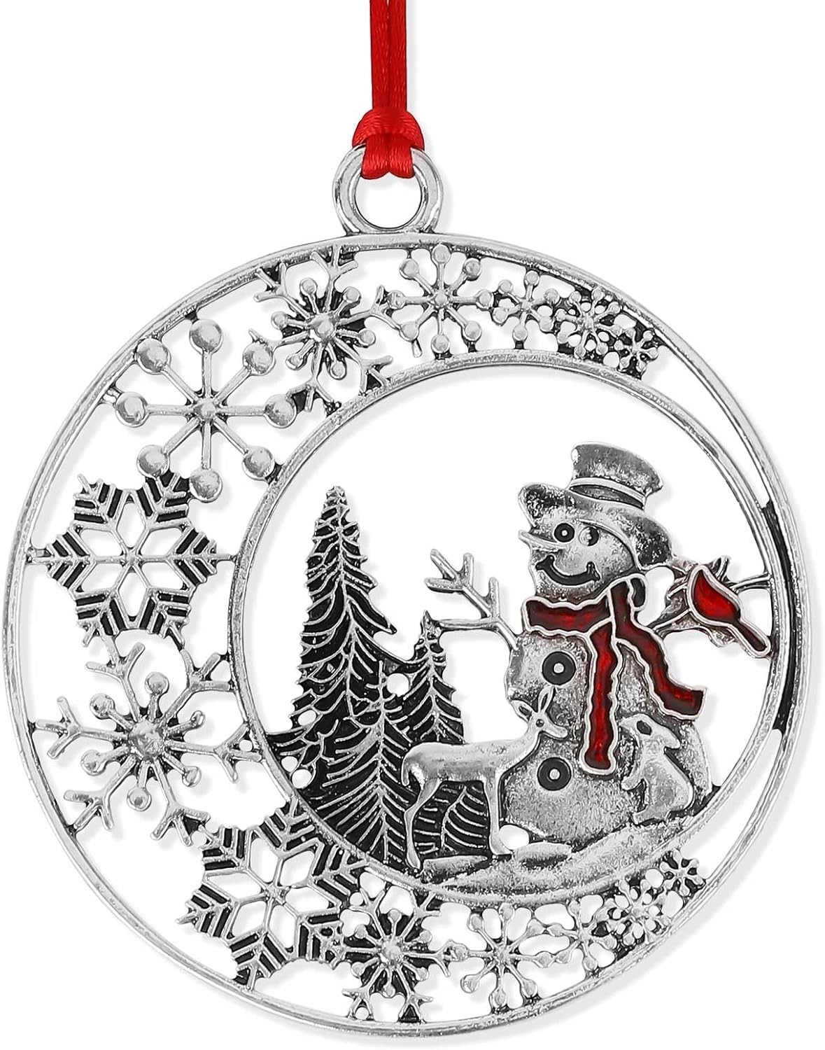 2024 Christmas Ornaments, Pewter Christmas Tree Ornament with Red Rope Gorgeous