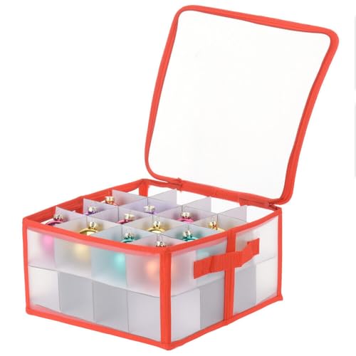 64 Christmas Bauble Storage Box with Adjustable Dividers and Zippered Closure –