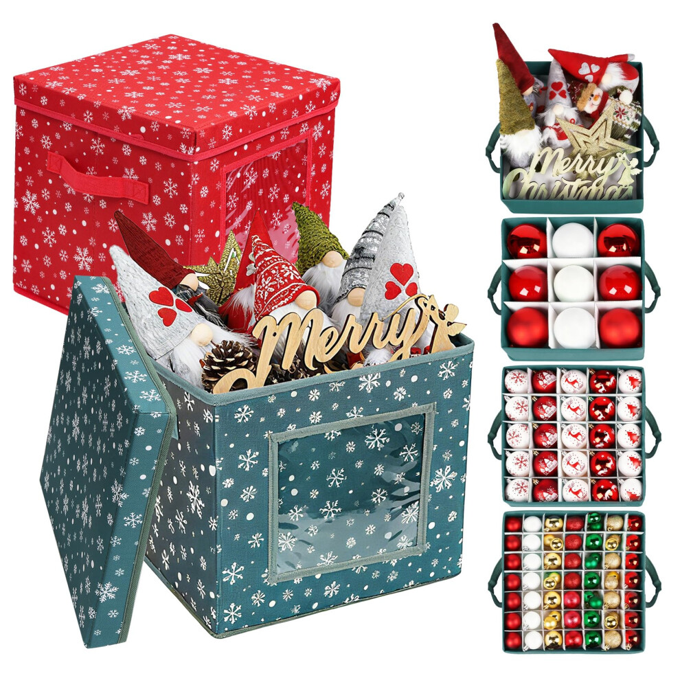 wsryx 2 Pack Christmas Bauble Storage Box, Foldable Clear Xmas Bauble Storage Boxes Cube with Dividers Stores up to 64 Baubles, Xmas Ornaments and