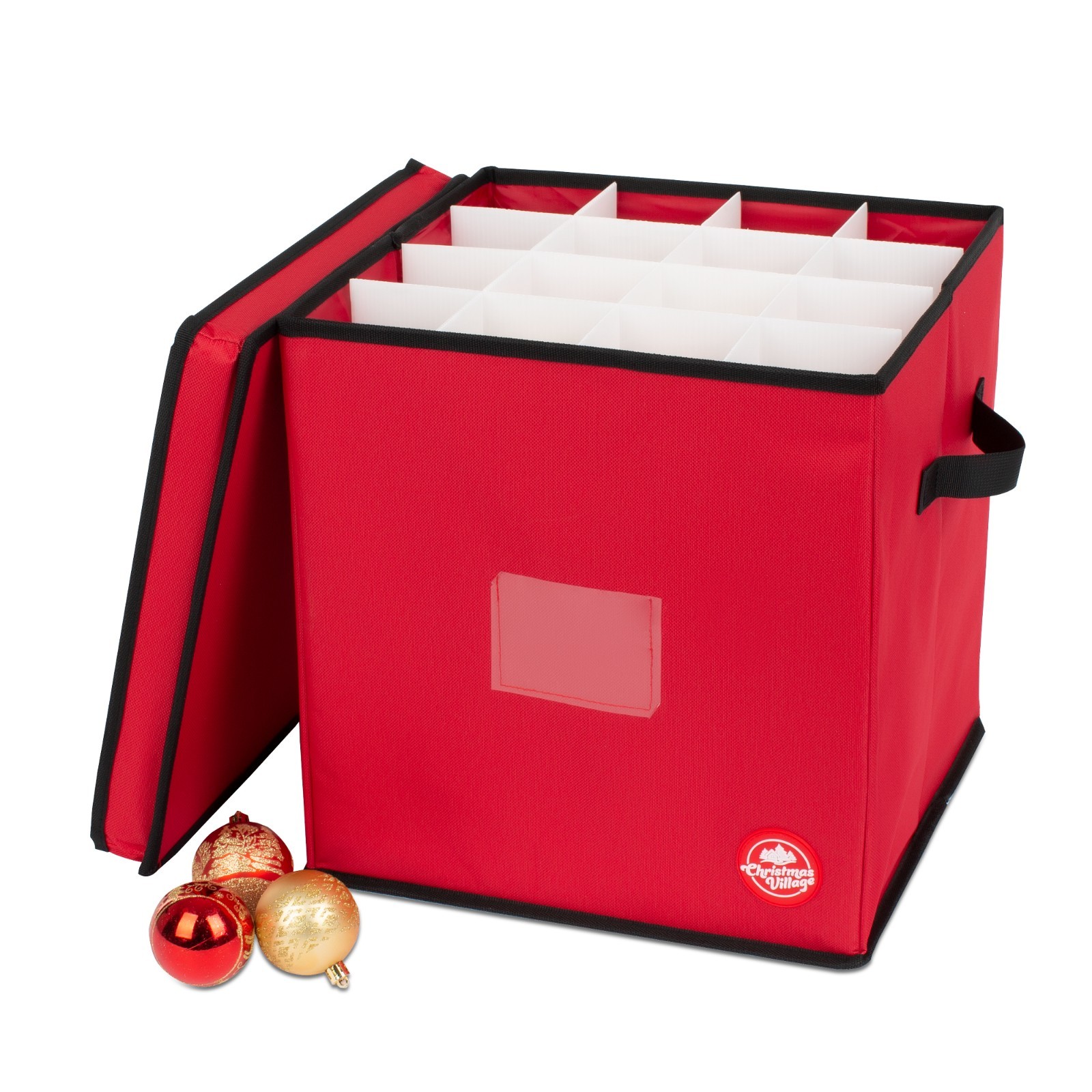 Christmas Village Red Bauble Storage Cube Bag with Dividers for 64 Ornaments
