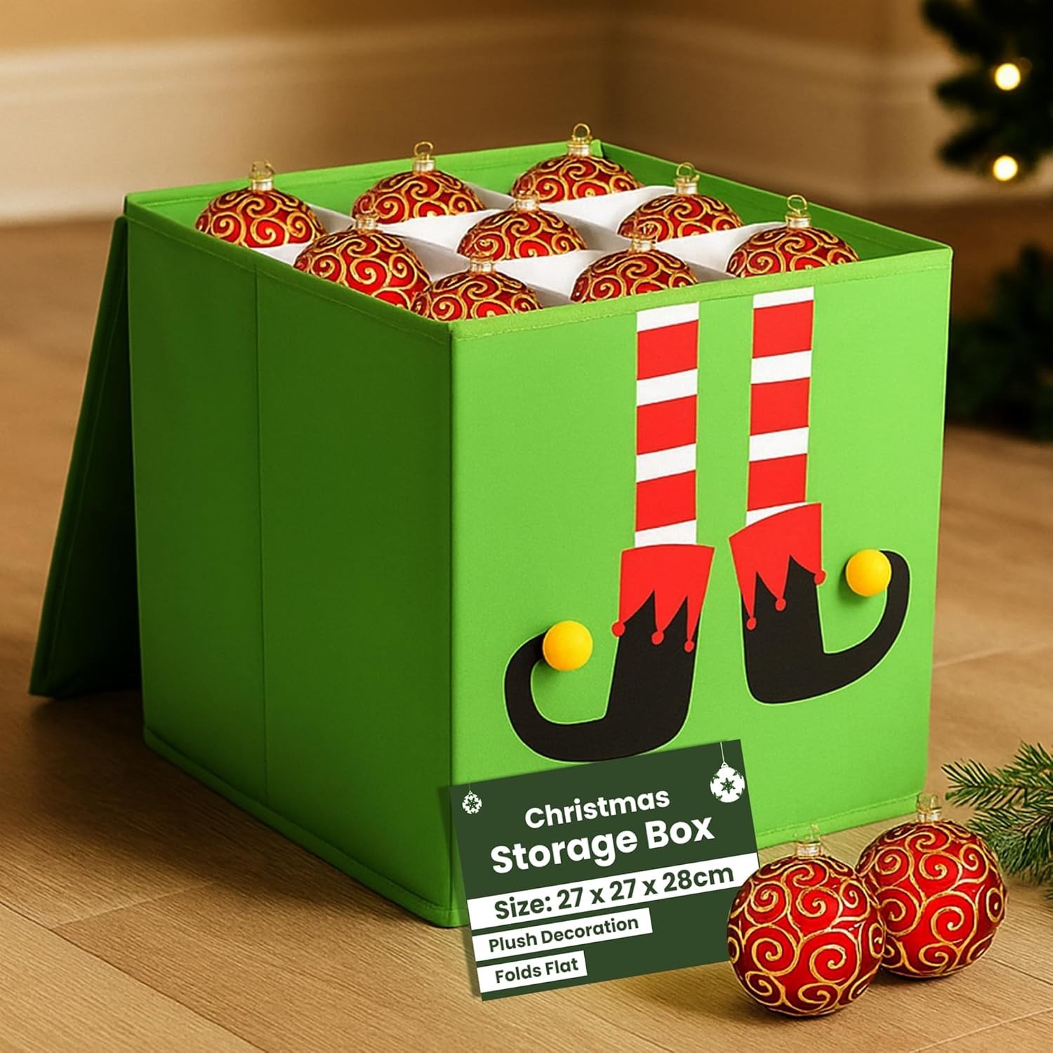 Premium 64 Christmas Bauble Collapsible Fabric Storage Cube