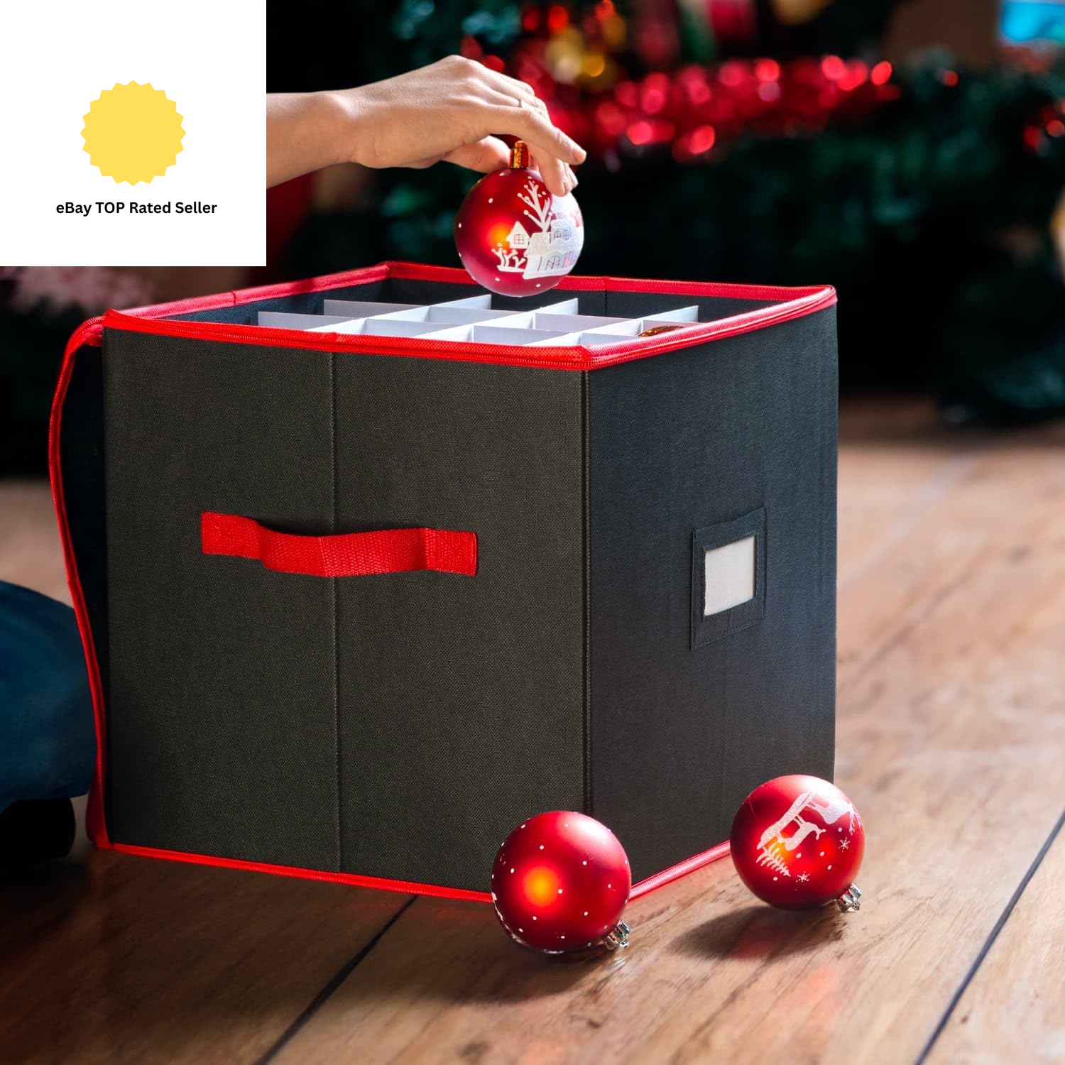 Red and Black Christmas Bauble Storage Box V2 Cube with Compartments St