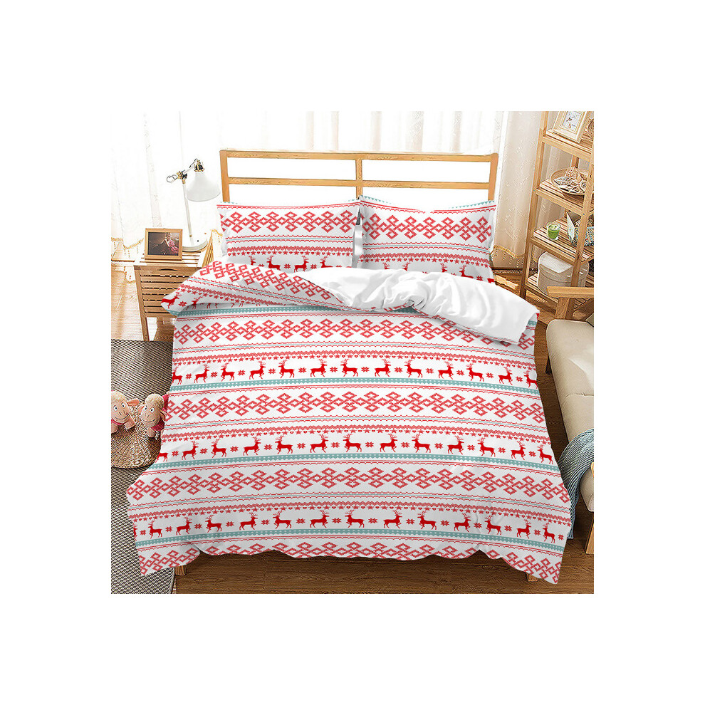 Double Bed Christmas Red Reversible Santa Nordic Duvet Quilt Cover Bedding Sets