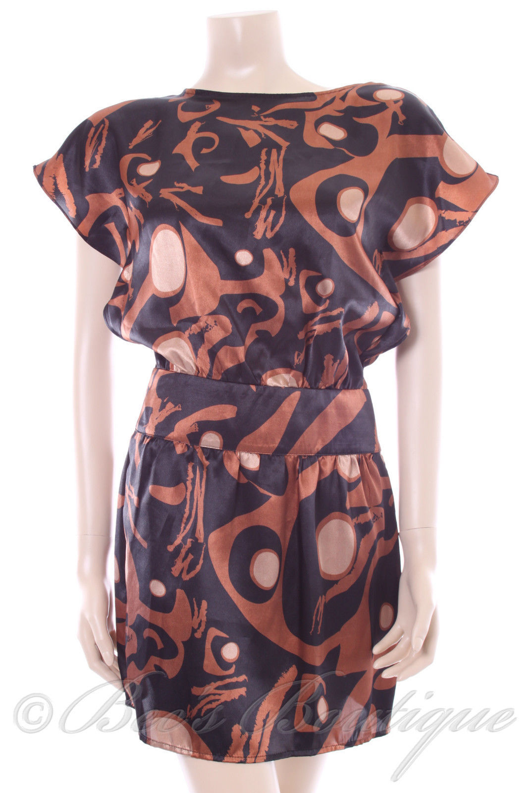 New Satin Dress Size 10 Papaya Black Brown Copper Evening Party Blouse Christmas