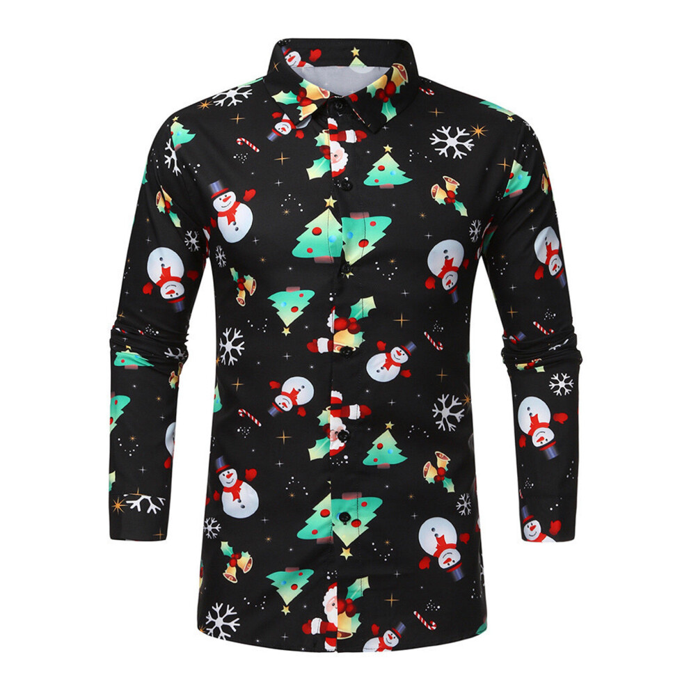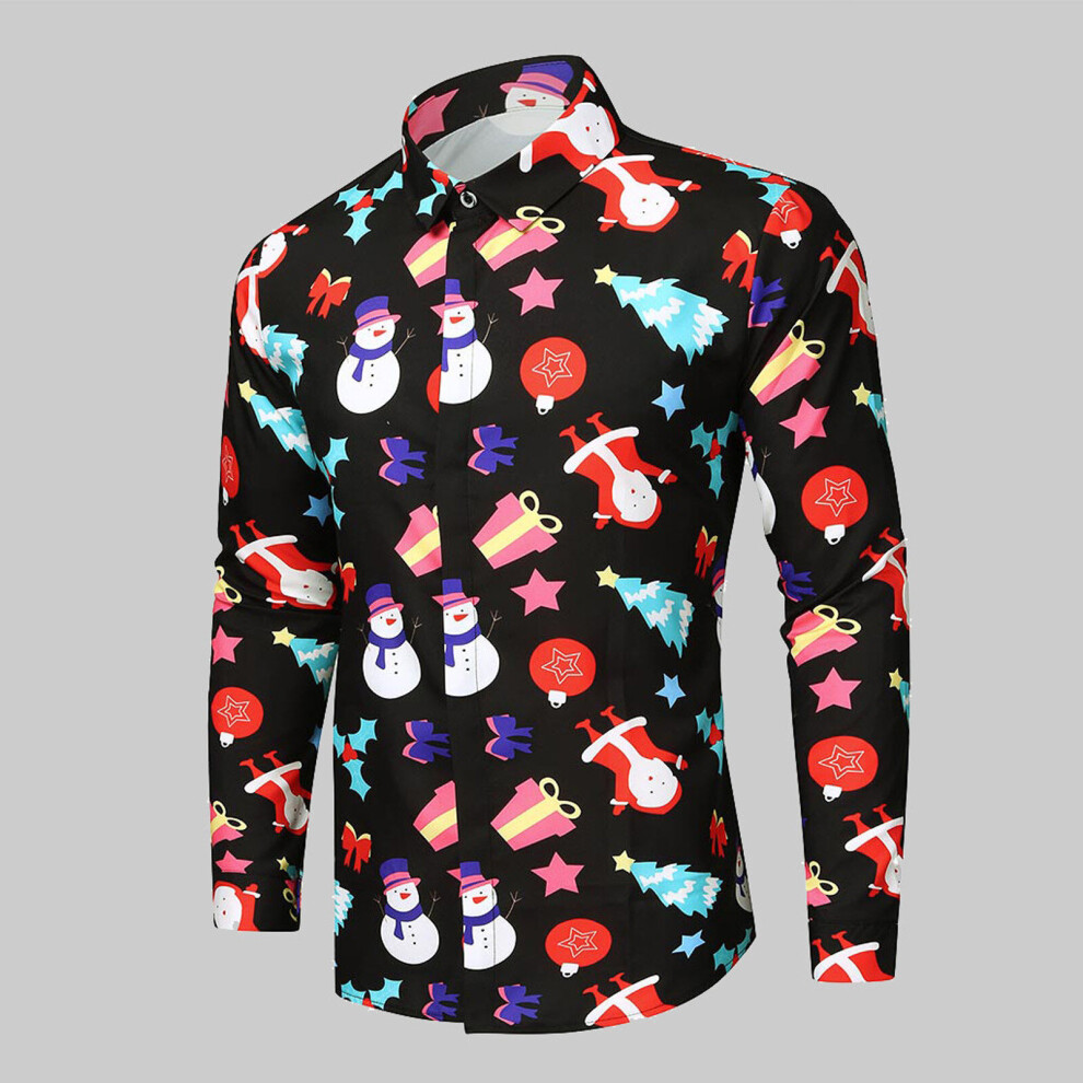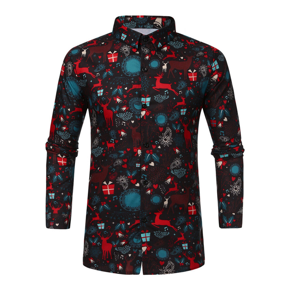Blouse Christmas Men's Sleeve Winter Shirts Autumn Long Casual Top Printed Men Shirts