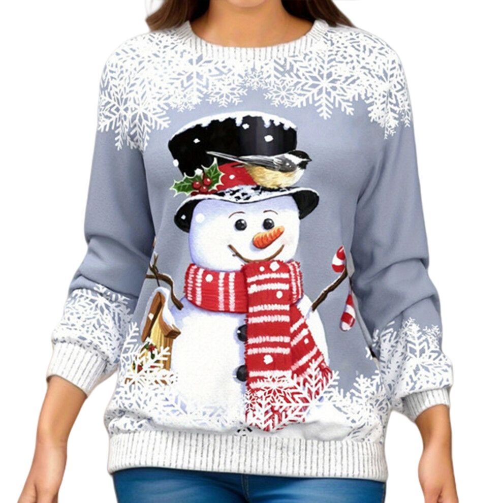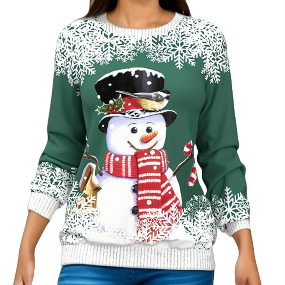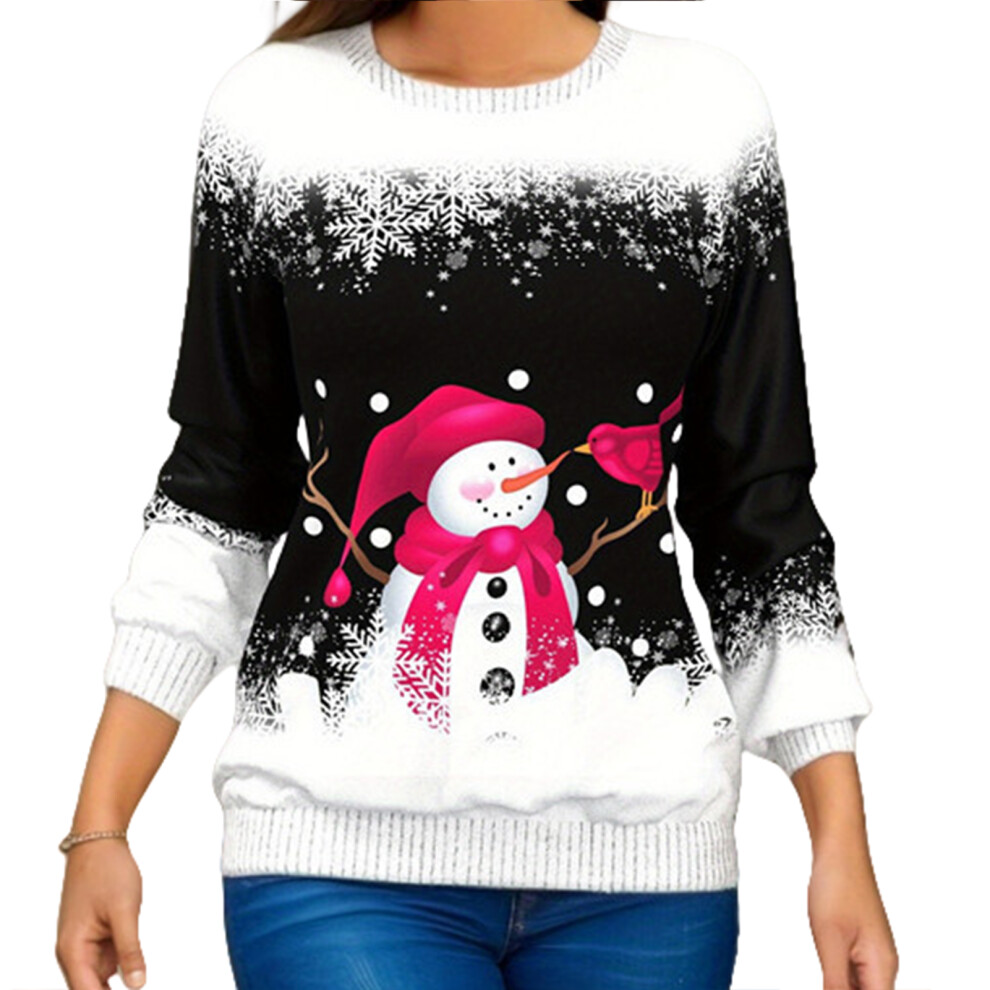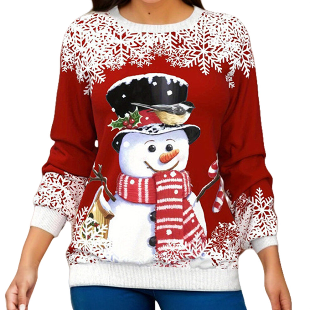 (A, M) Crew Neck Christmas Blouse Sweatshirt For Women Clothing Stylish