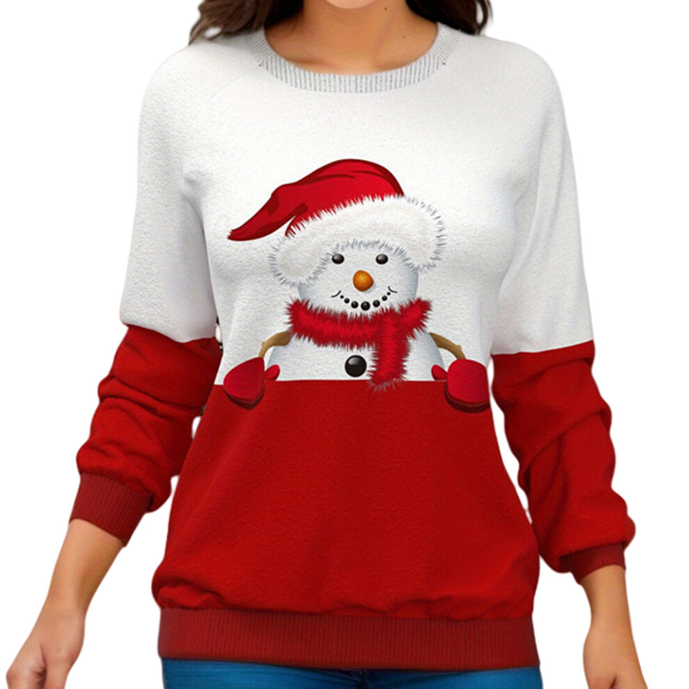 (A, S) Crew Neck Christmas Blouse Sweatshirt For Women Clothing Stylish