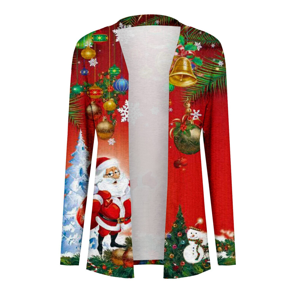 Printed Cardigan Santa Claus Women's Christmas Coat Jackets With Pockets Christmas Casual Blouse Outwear Tops Sweatshirt