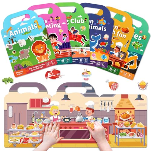 Lerifer 6 Sets Reusable Sticker Books for Toddlers 1-3, Puffy Stickers Books for Kids Ages 2-4, Toddler Travel Toys Sticker Activity Book - Toys for Toddler Boys Girls Birthday, Christmas