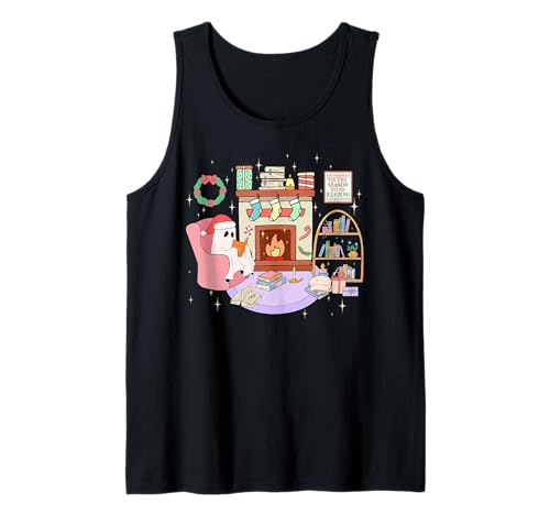 Funny Ghost Book Reading Christmas Books Lover Teacher Kids Tank Top