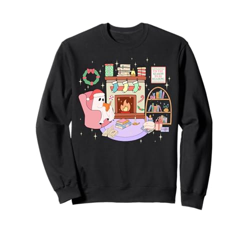 Funny Ghost Book Reading Christmas Books Lover Teacher Kids Sweatshirt