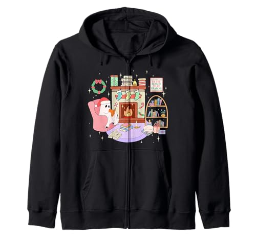 Funny Ghost Book Reading Christmas Books Lover Teacher Kids Zip Hoodie