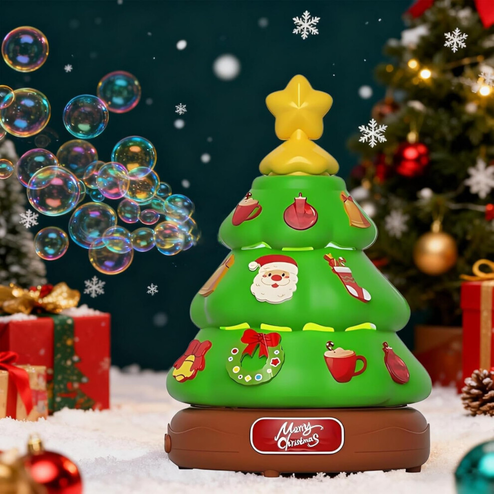 Christmas Bubbles Machine Tree Light Up Rotating - Music Box Rechargeable Xmas Decoration Bubble Blower