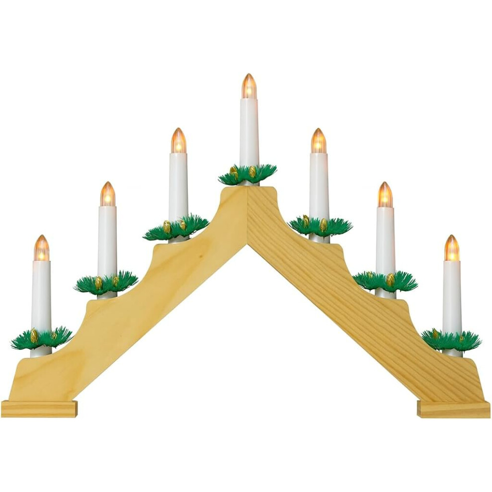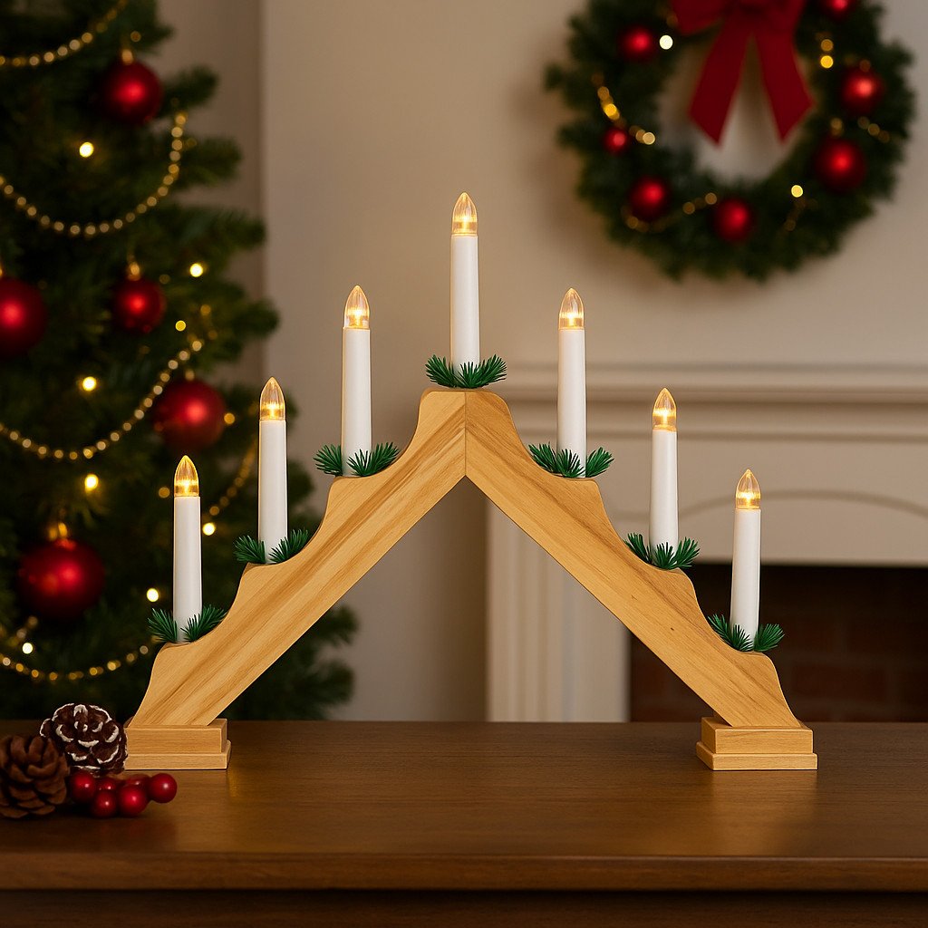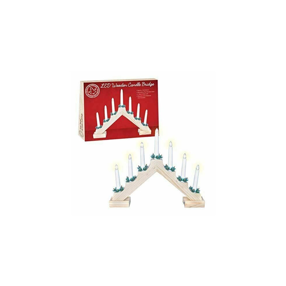 Natural Wooden LED Christmas Candle Bridge with 7 Flameless LED Candles | 39.5x31cm/15.6x12.2" Candle Bridge Christmas Lights, Battery Operated | Christmas Gifts & Ornaments, Window Sill Decorations