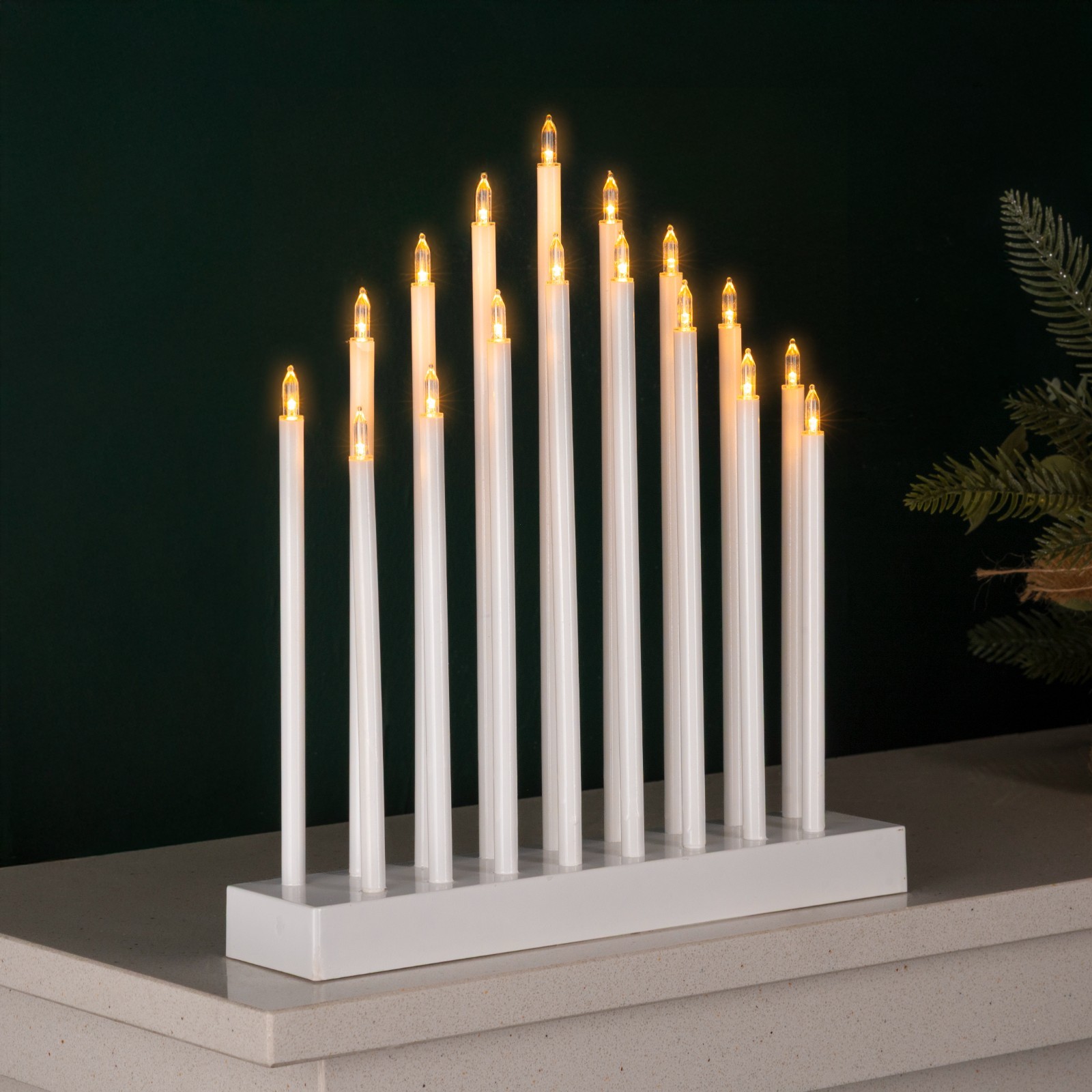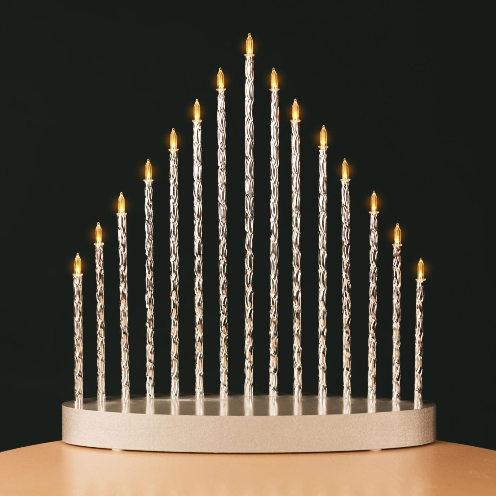 Christmas Silver Candle Bridge 17 LED Pipe Warm White Light Festive Window Decor