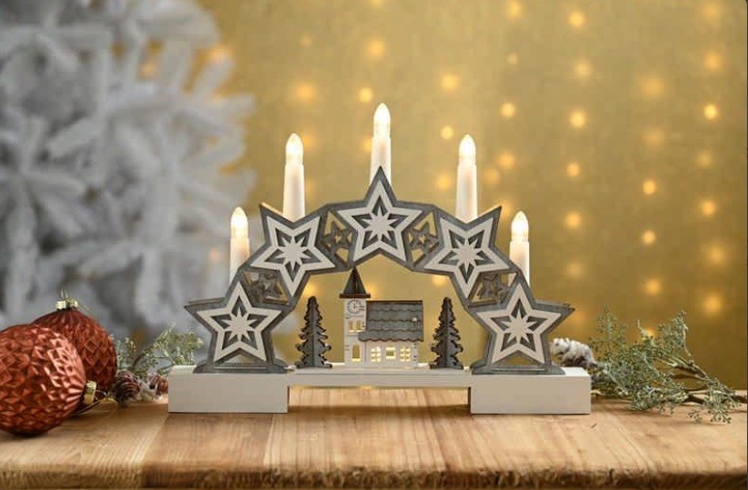 Christmas Candle Bridge Decoration Arch 7 Bulb Silver Wooden Light Xmas Window