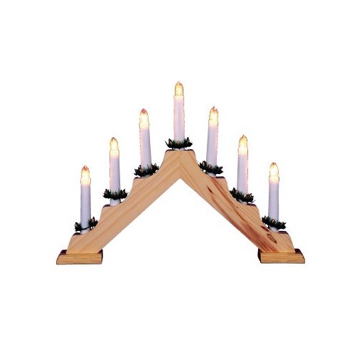 Christmas Candle Bridge V Shaped - 7 Bulb - Pine Wood