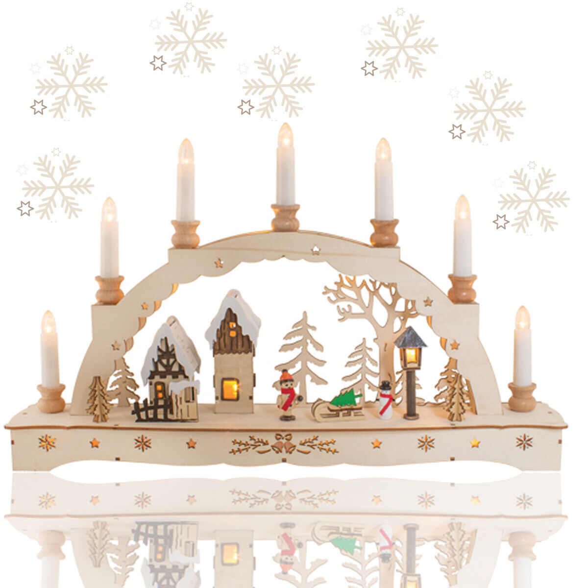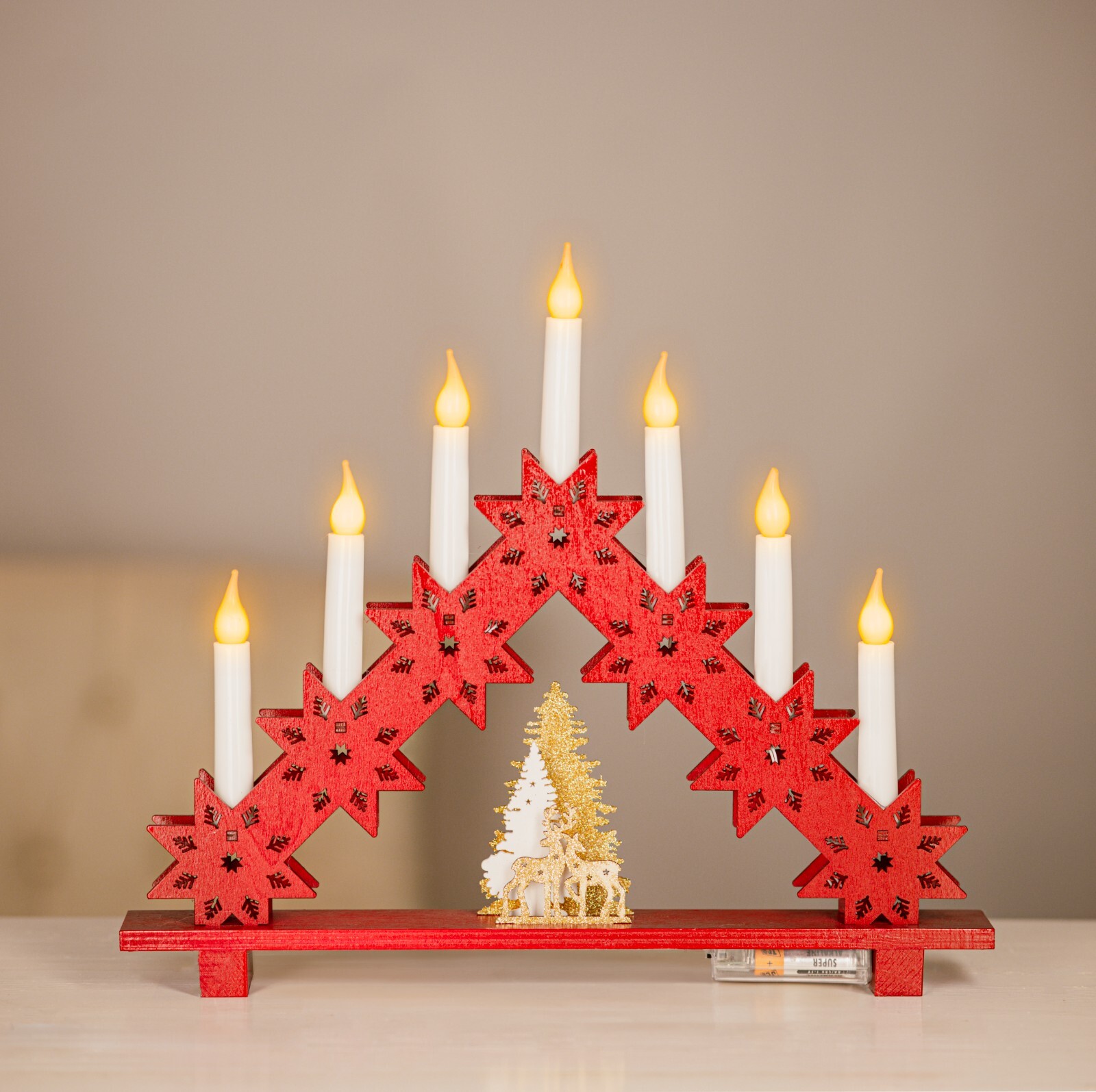 Christmas Candle Bridge Decoration LED Wooden Light Up Arch Xmas 7 Pipes Battery