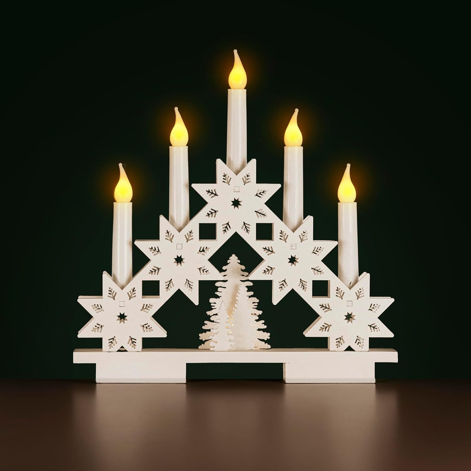 Christmas Candle Bridge Decoration 5 LED Wooden White Traditional Arch Snowflake