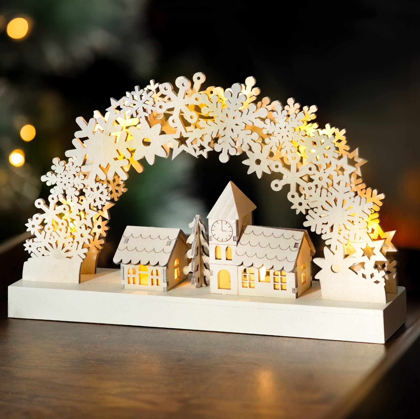 Christmas Candle Bridge Decoration LED Wooden Light Up Arch Snowflake 7 Pipe
