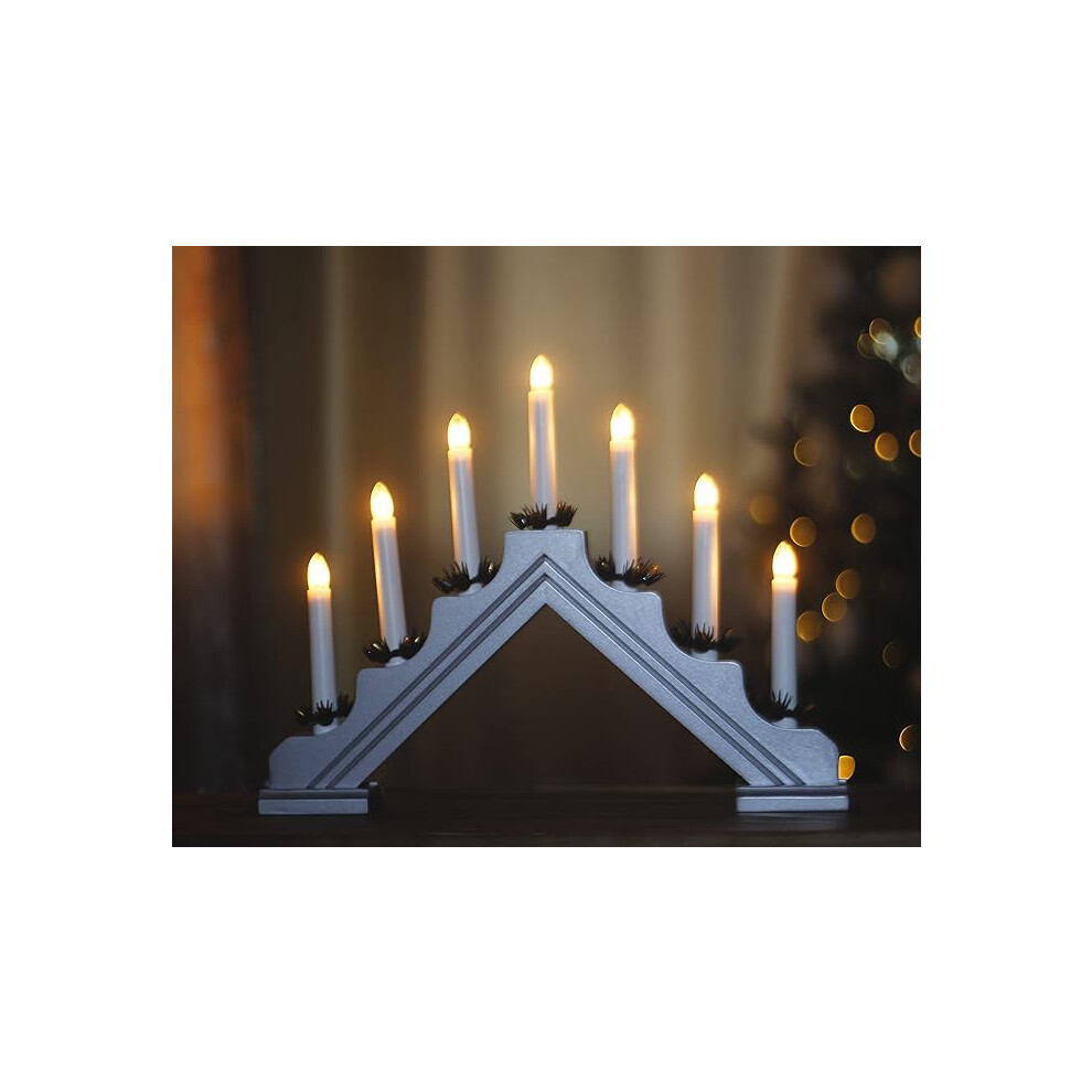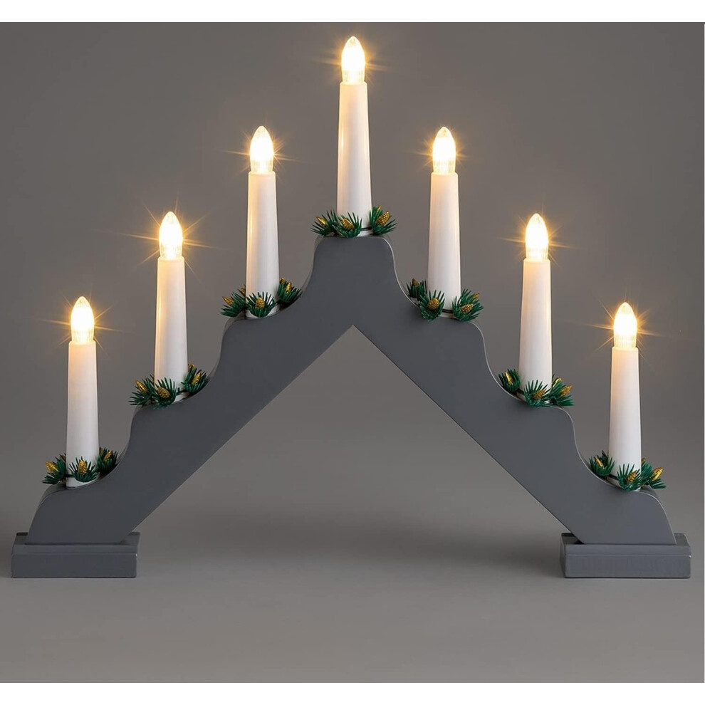 7 LED Wooden Christmas B/O Candle Bridge - Grey