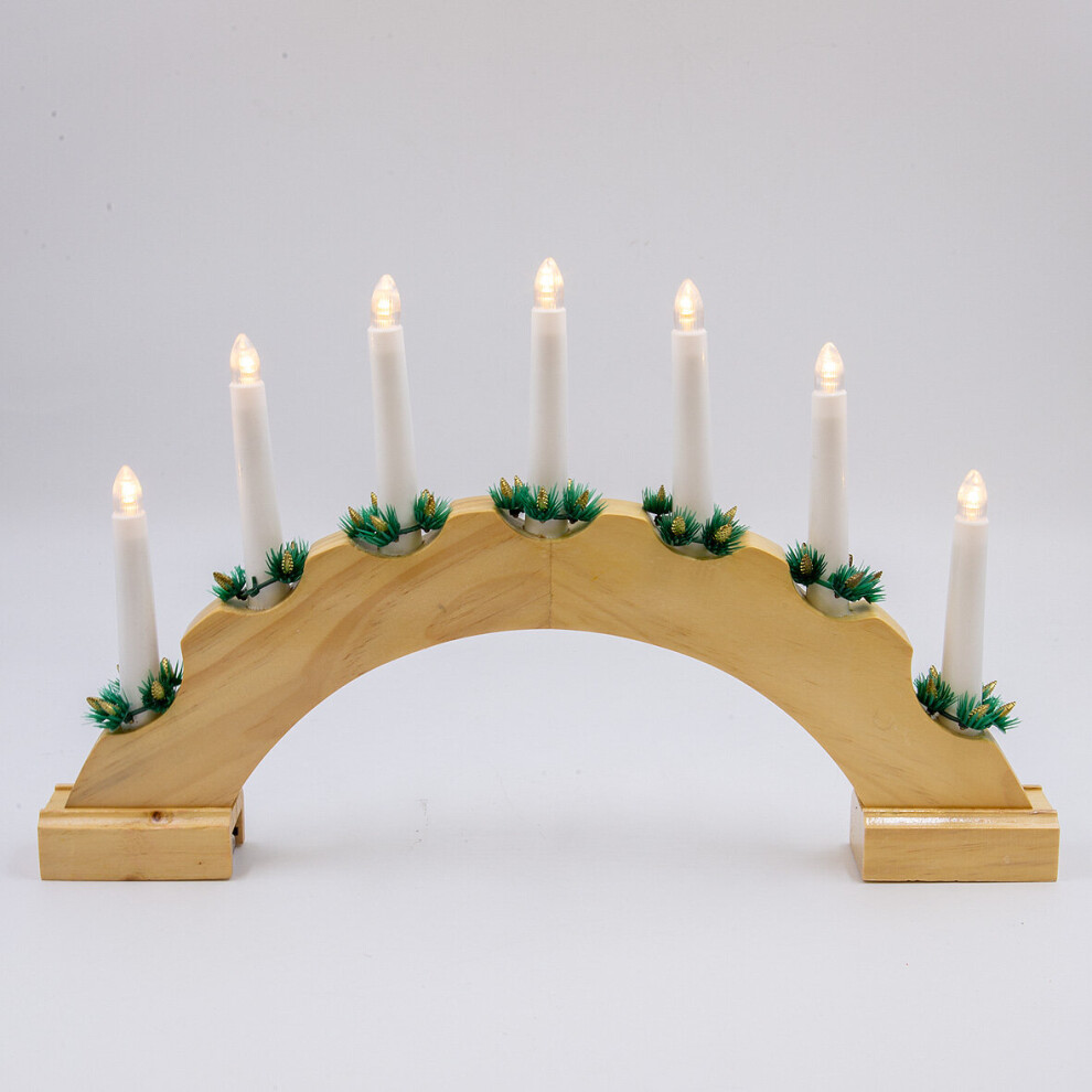7 LED Wooden Christmas B/O Candle Bridge - Natural