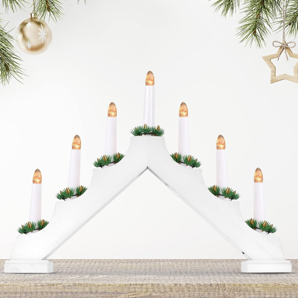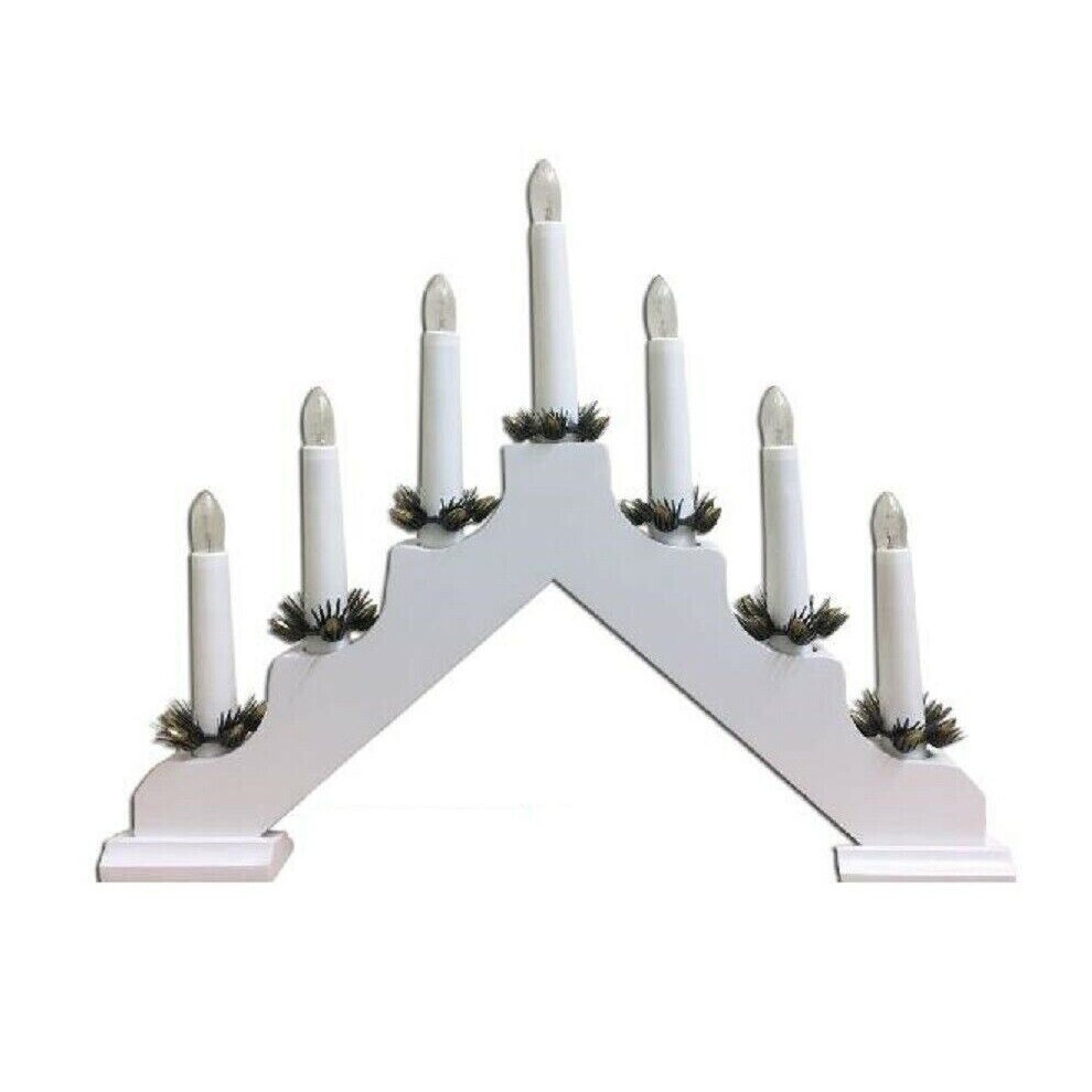 Christmas Candle Bridge Arch 7 Bulb White Home Decor Wooden Light Xmas Window