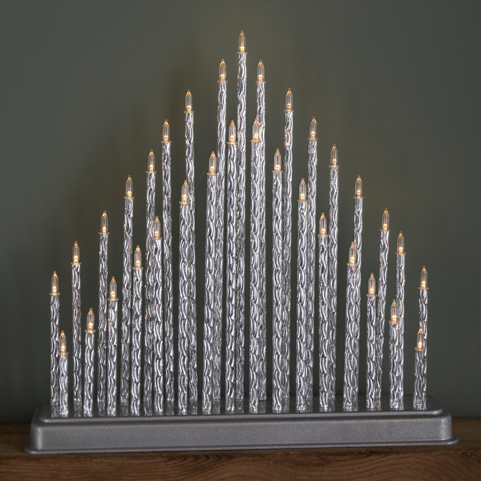 33cm Battery Operated Silver Light up Christmas Candle Bridge with 33 Warm White LEDs