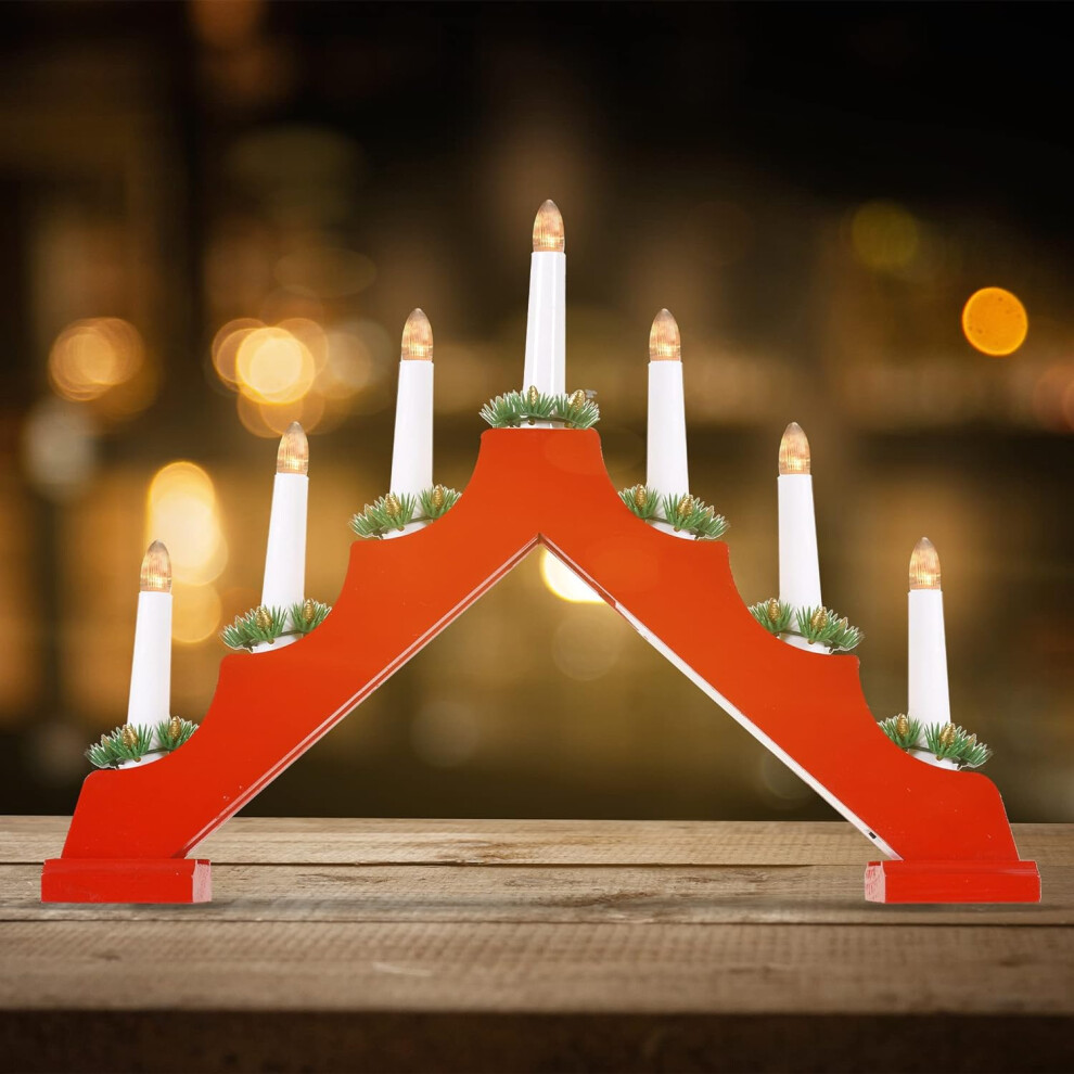 7 LED Wooden Christmas B/O Candle Bridge - Red