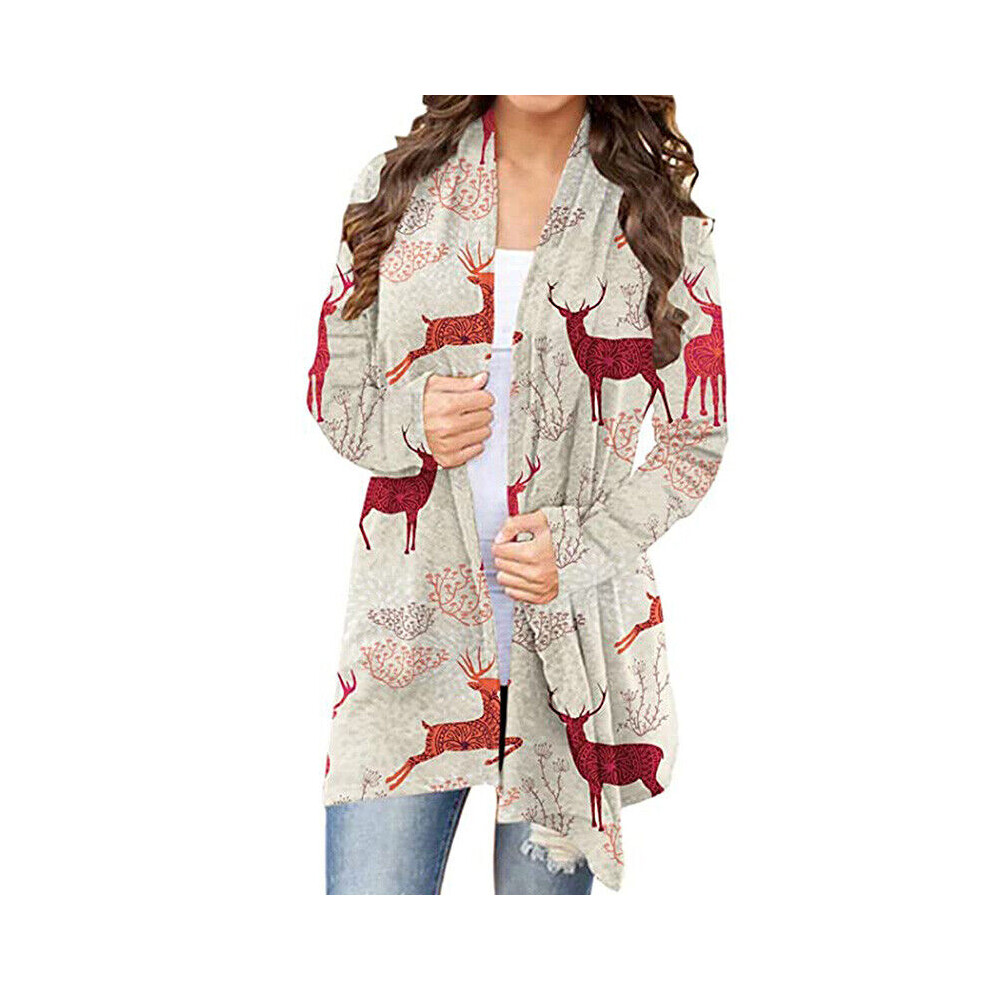 (Deer, UK Size 8-10=Tag Size M) Women Christmas Cardigans Open Front Xmas Sweater Ladies Festival Jumper Tops