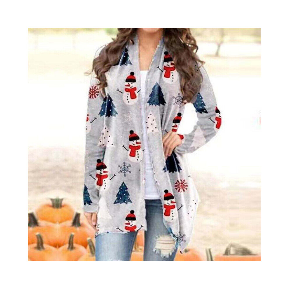 (Blue Snowman, UK Size 16=Tag Size 2XL) Women Christmas Cardigans Open Front Xmas Sweater Ladies Festival Jumper Tops