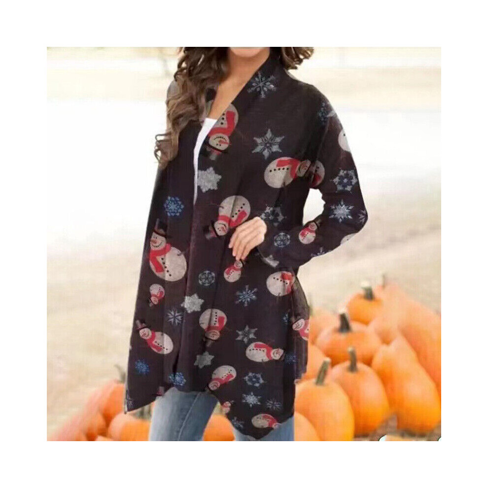 (Black Snowman, UK Size 18=Tag Size 3XL) Women Christmas Cardigans Open Front Xmas Sweater Ladies Festival Jumper Tops