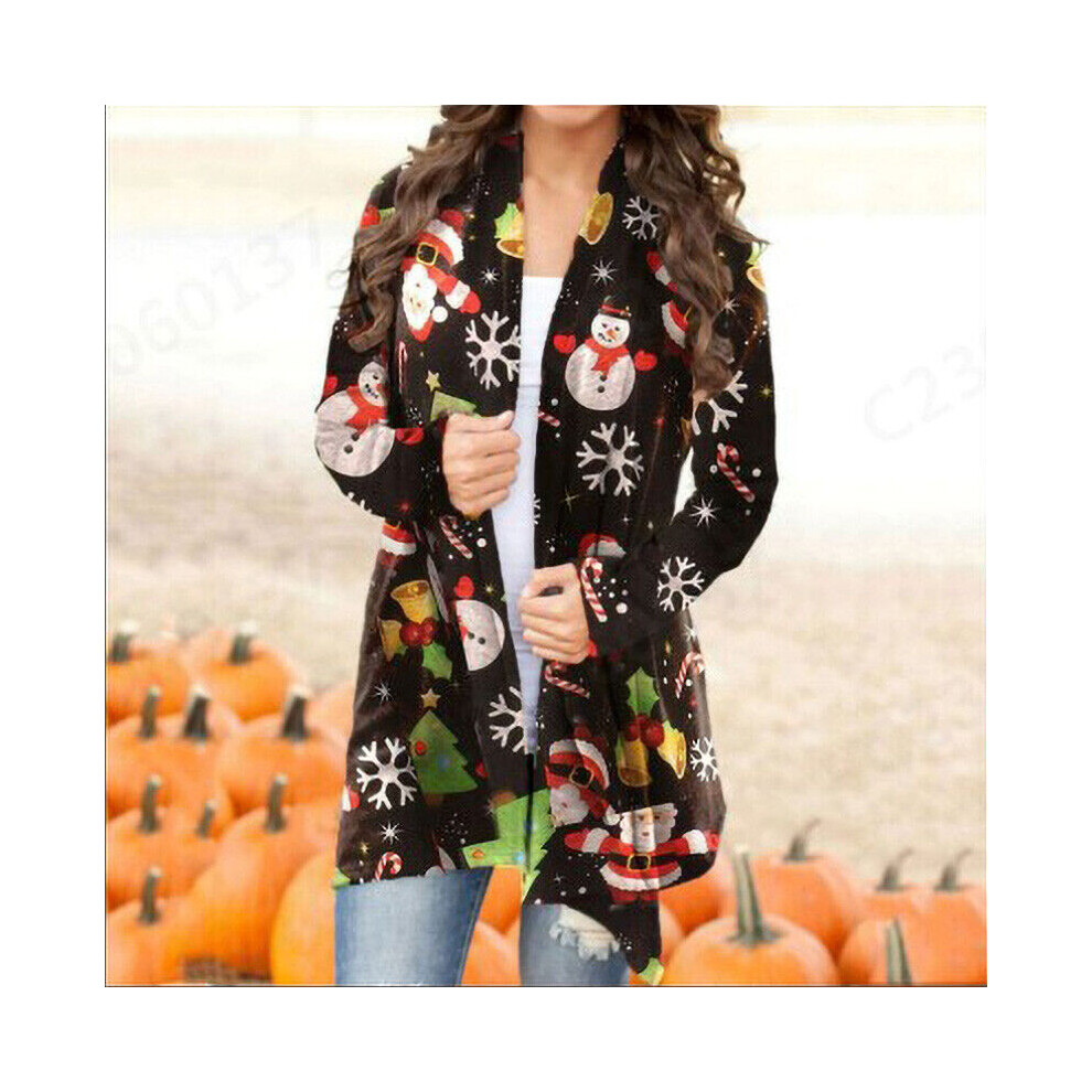 (black, M) Gifts for Christmas Bidobibo Womens Christmas Open Front Cardigans Sweaters, Fashion Christmas Print Long Sleeve Open Front Cardigan for Wo