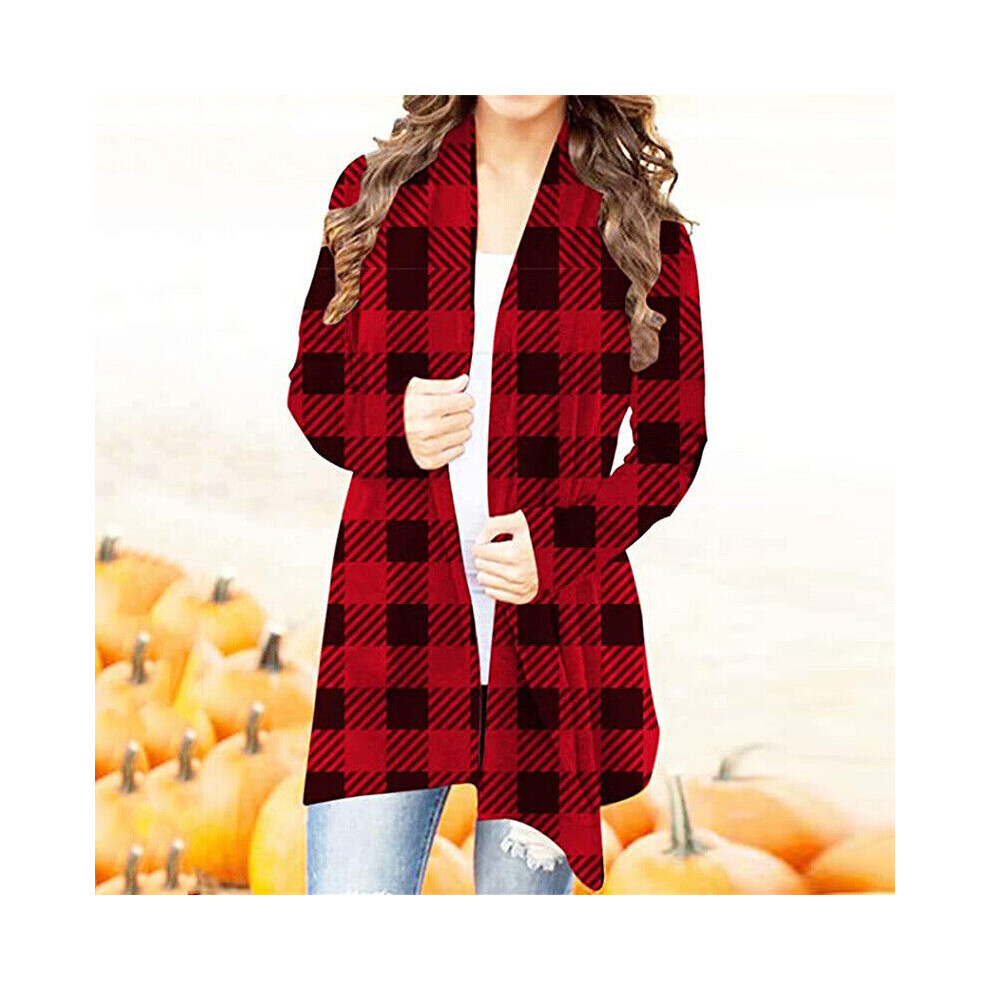 (Red Plaid, UK Size 16=Tag Size 2XL) Women Christmas Cardigans Open Front Xmas Sweater Ladies Festival Jumper Tops