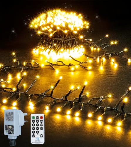 EcoNour Christmas Tree Lights Cluster Lights 480 LED - 6 Hours On Timer, 8 Light Modes, Plug in, Waterproof Indoor & Outdoor Use – 480 LED / 6m Lit Length, Warm White